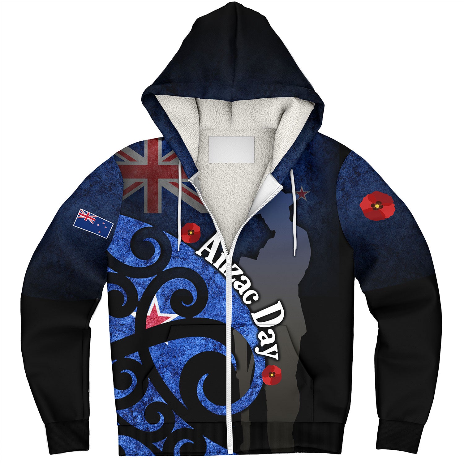 New Zealand Sherpa Hoodie Anzac Day Flag Maori Patterns