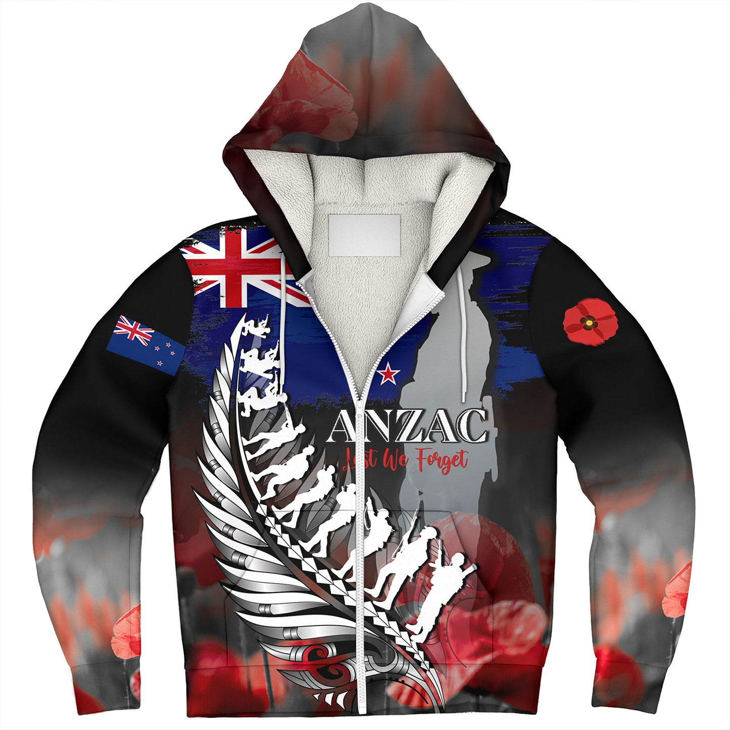 New Zealand Custom Personalised Sherpa Hoodie Anzac Day Silver Fern Flag Style