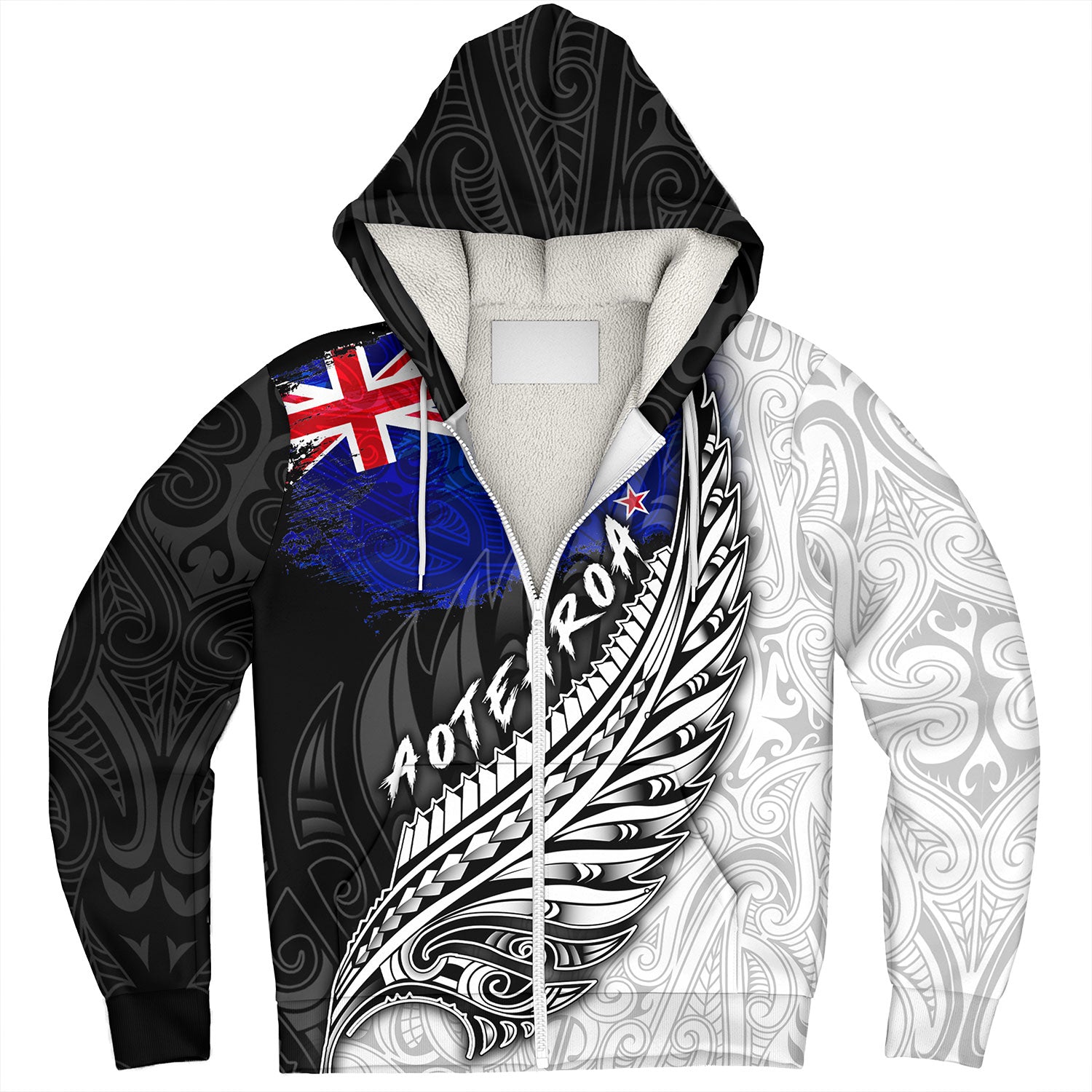 New Zealand Custom Personalised Sherpa Hoodie Maori Silver Fern Flag Vibes