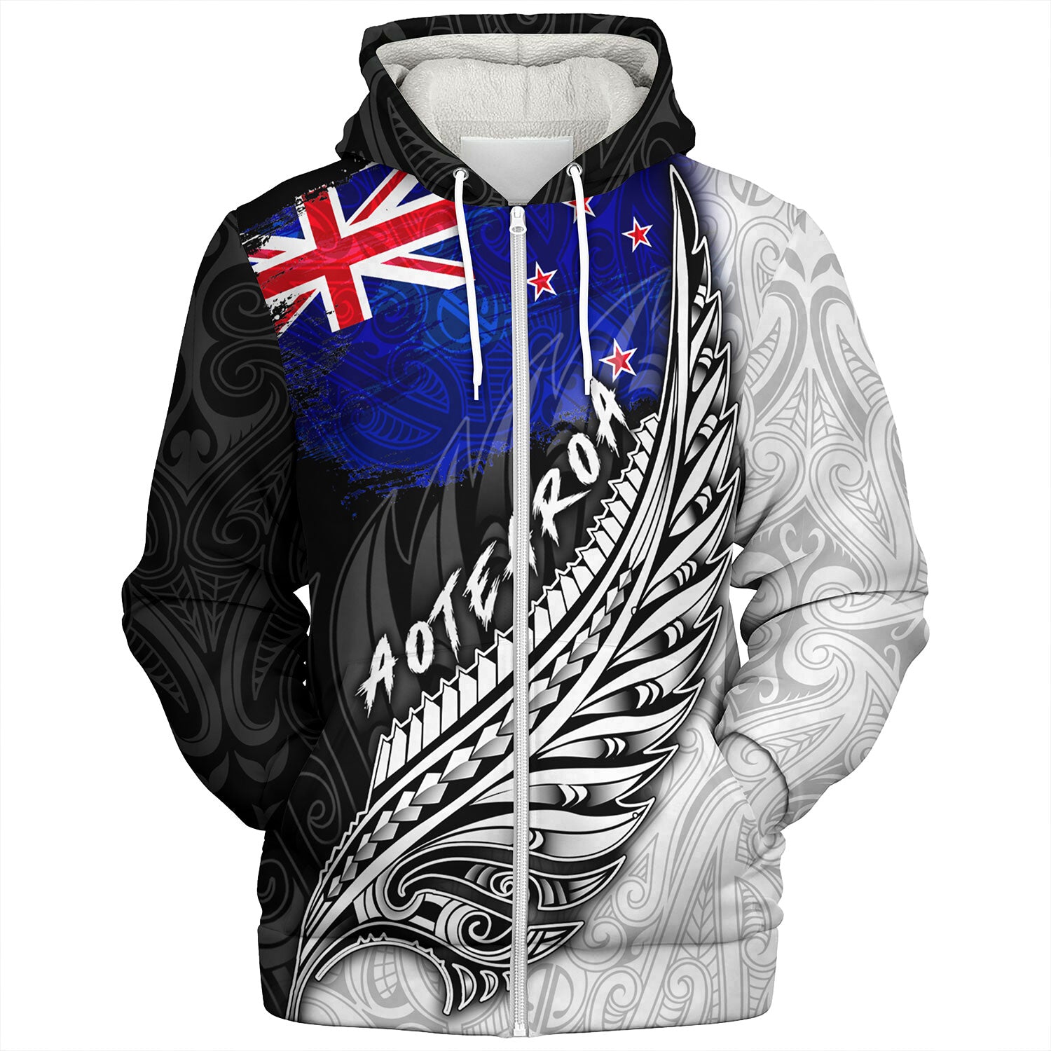 New Zealand Sherpa Hoodie Maori Silver Fern Flag Vibes