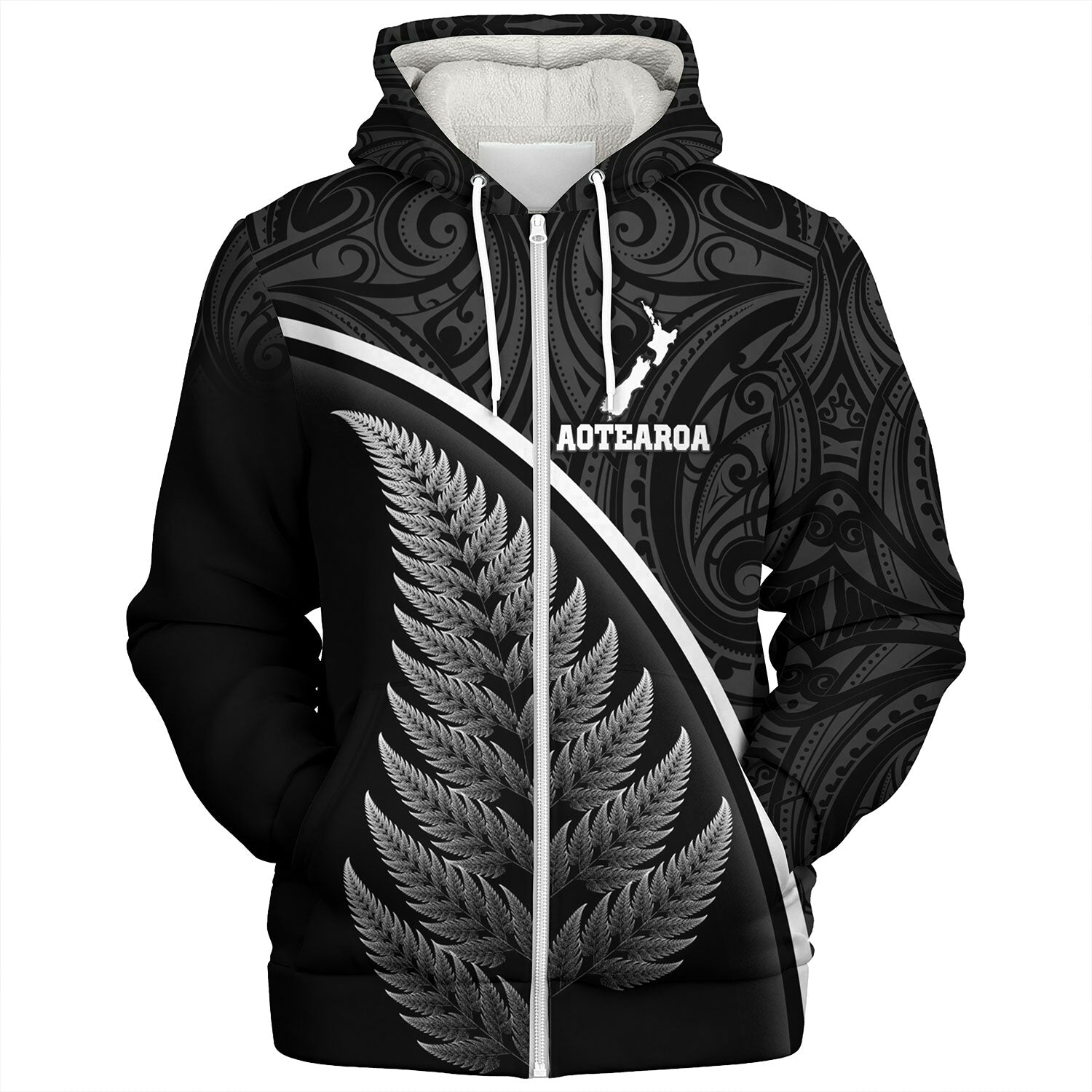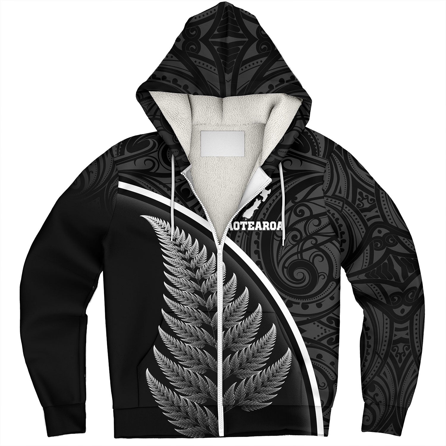 New Zealand Custom Personalised Sherpa Hoodie Maori Style Ethnic Curve Design