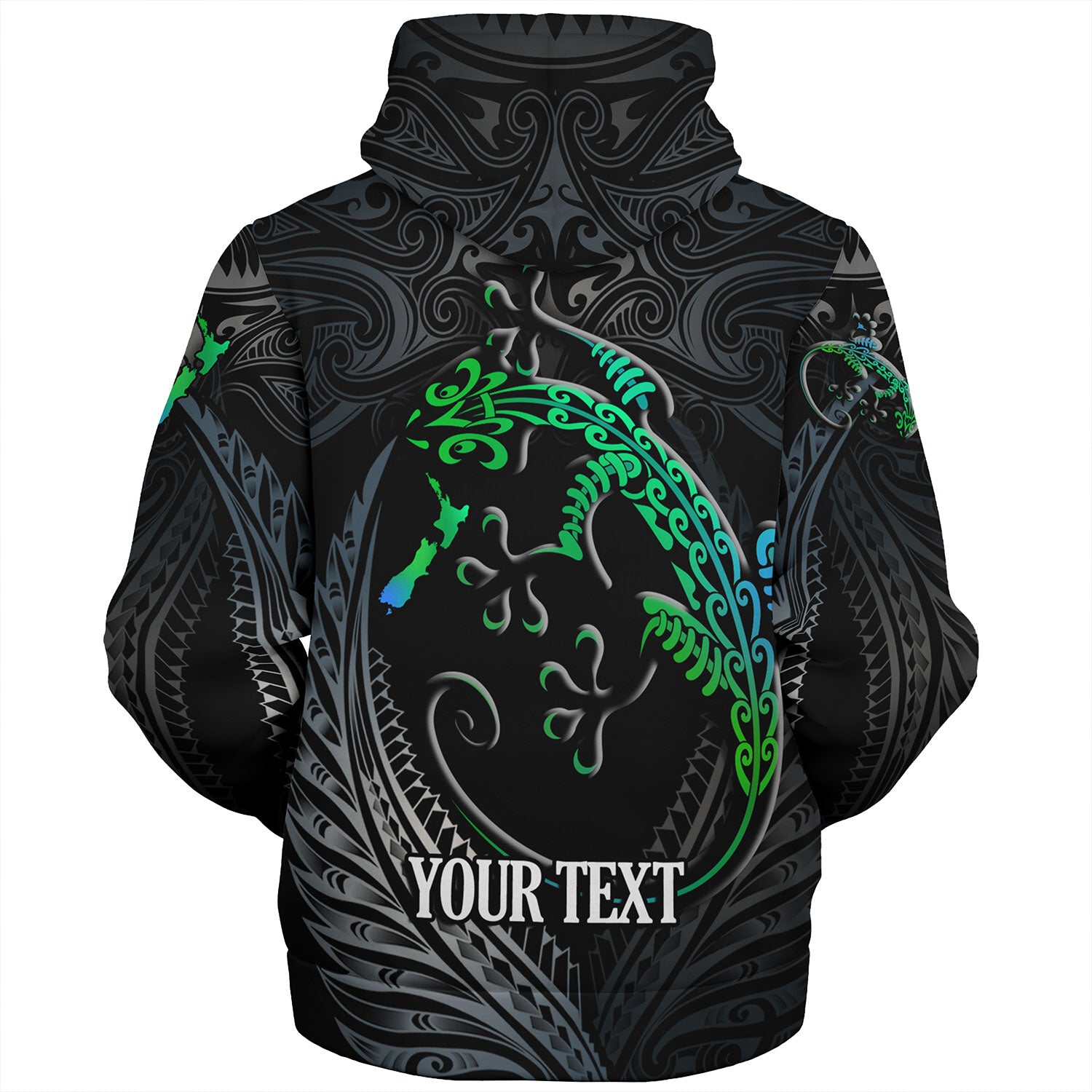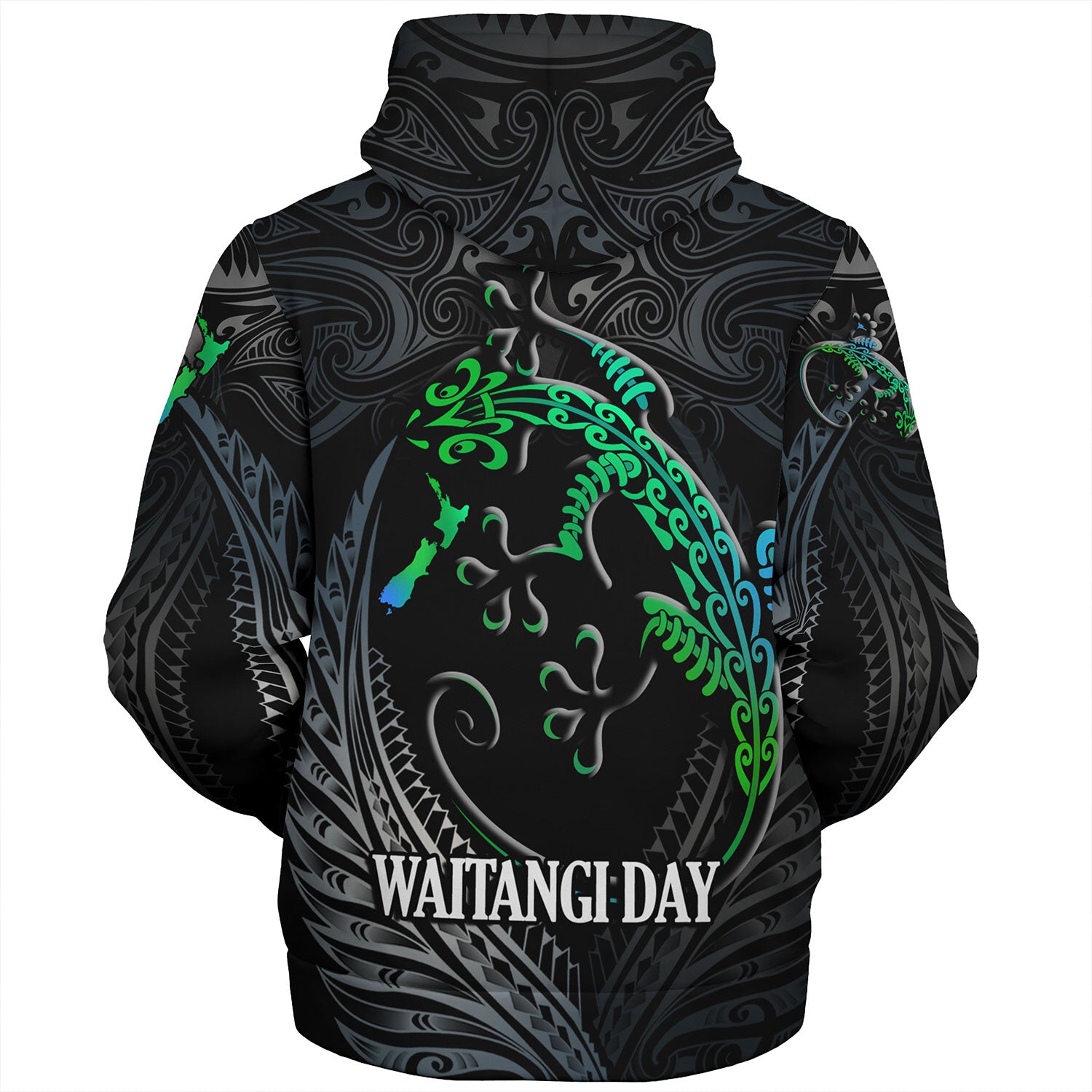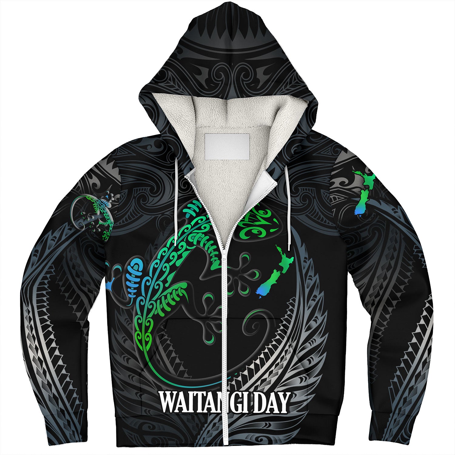 New Zealand Custom Personalised Sherpa Hoodie Waitangi Day Ethnic Lizard Maori Patterns