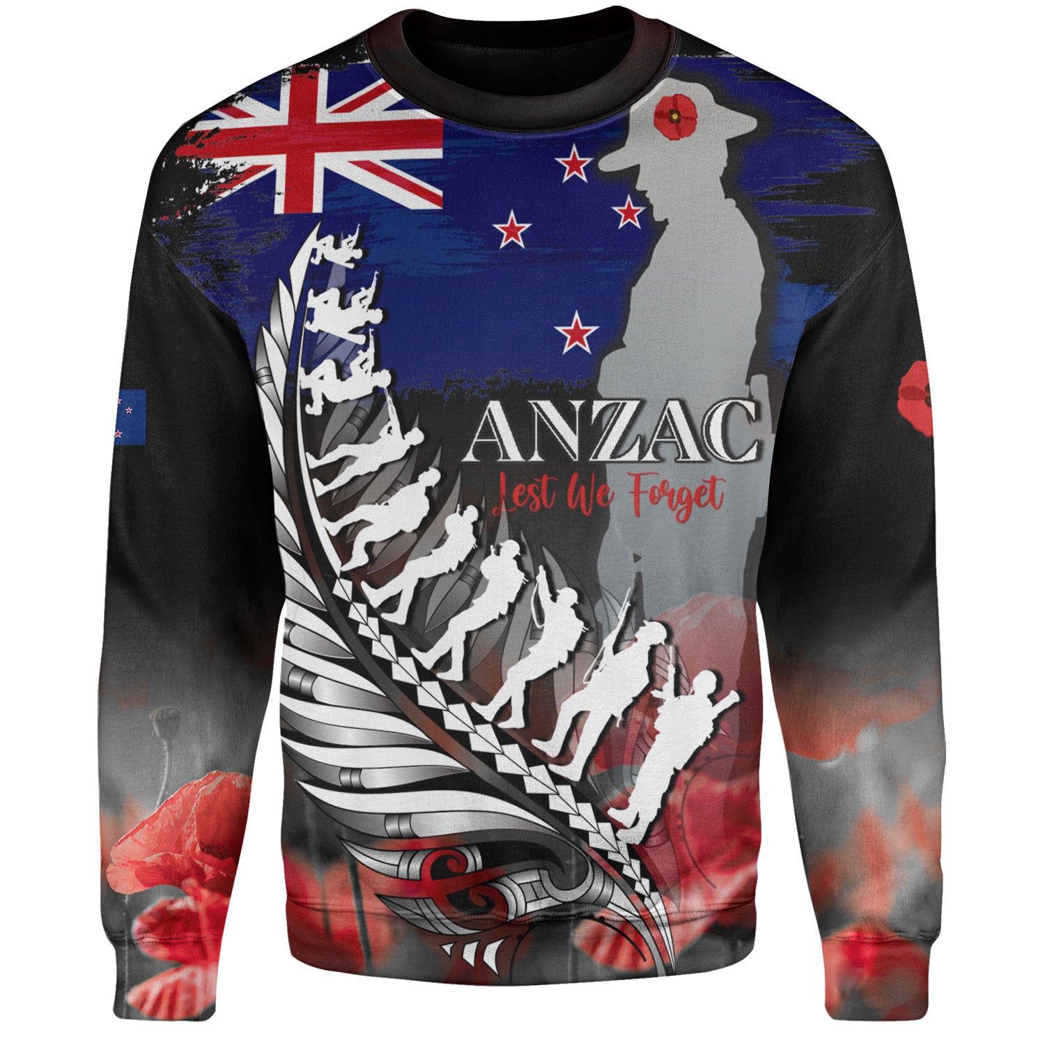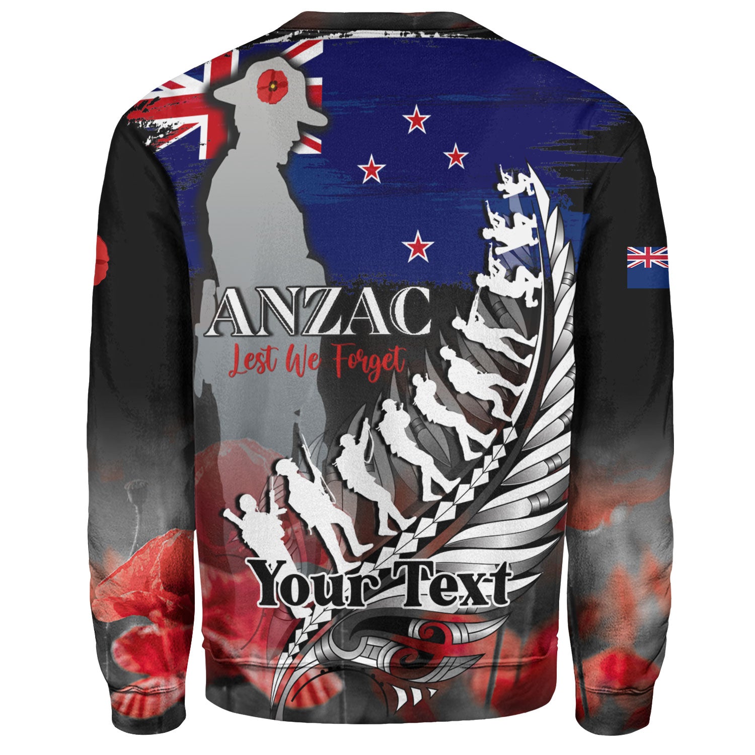 New Zealand Custom Personalised Sweatshirt Anzac Day Silver Fern Flag Style