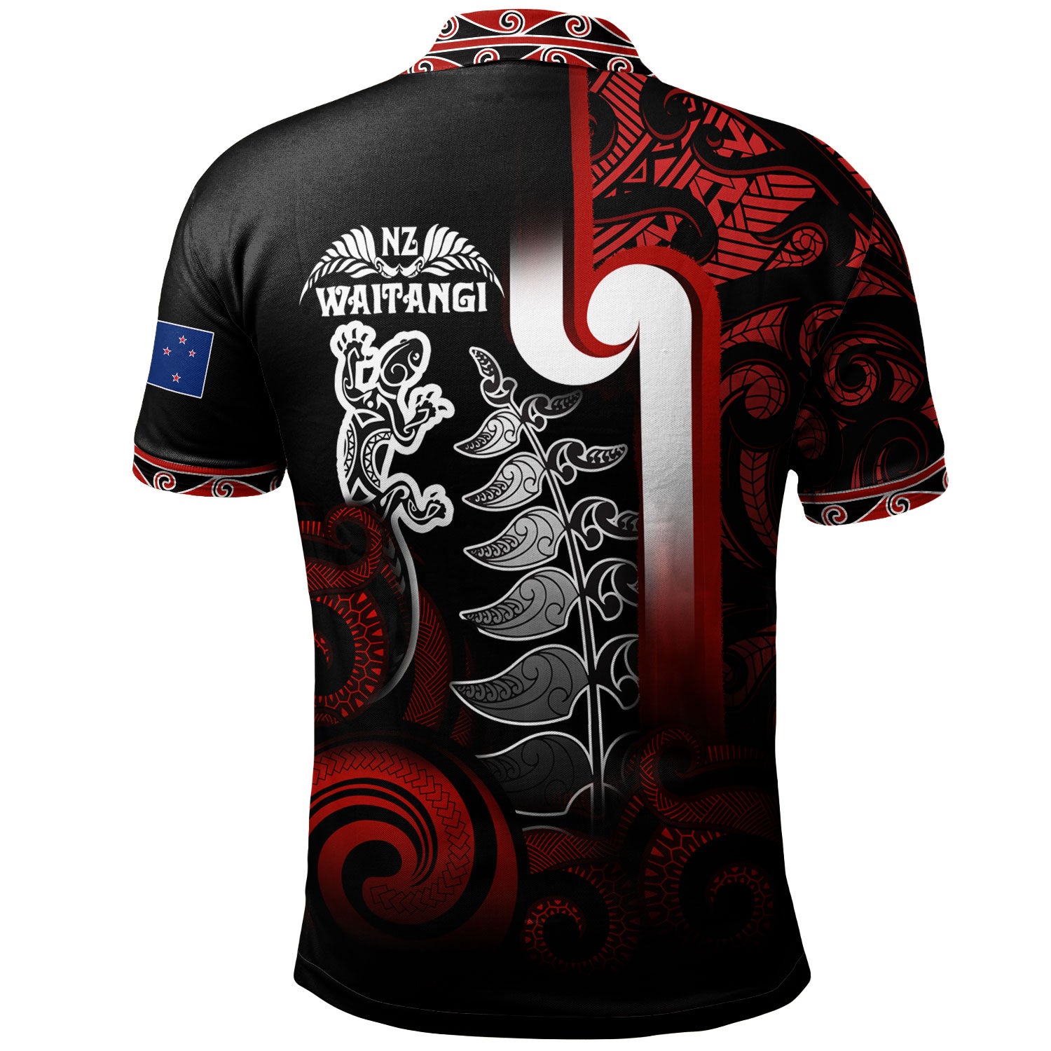 New Zealand Gradient Polo Shirt - Maori Tino Rangatiratanga With Lizard And Silver Fern