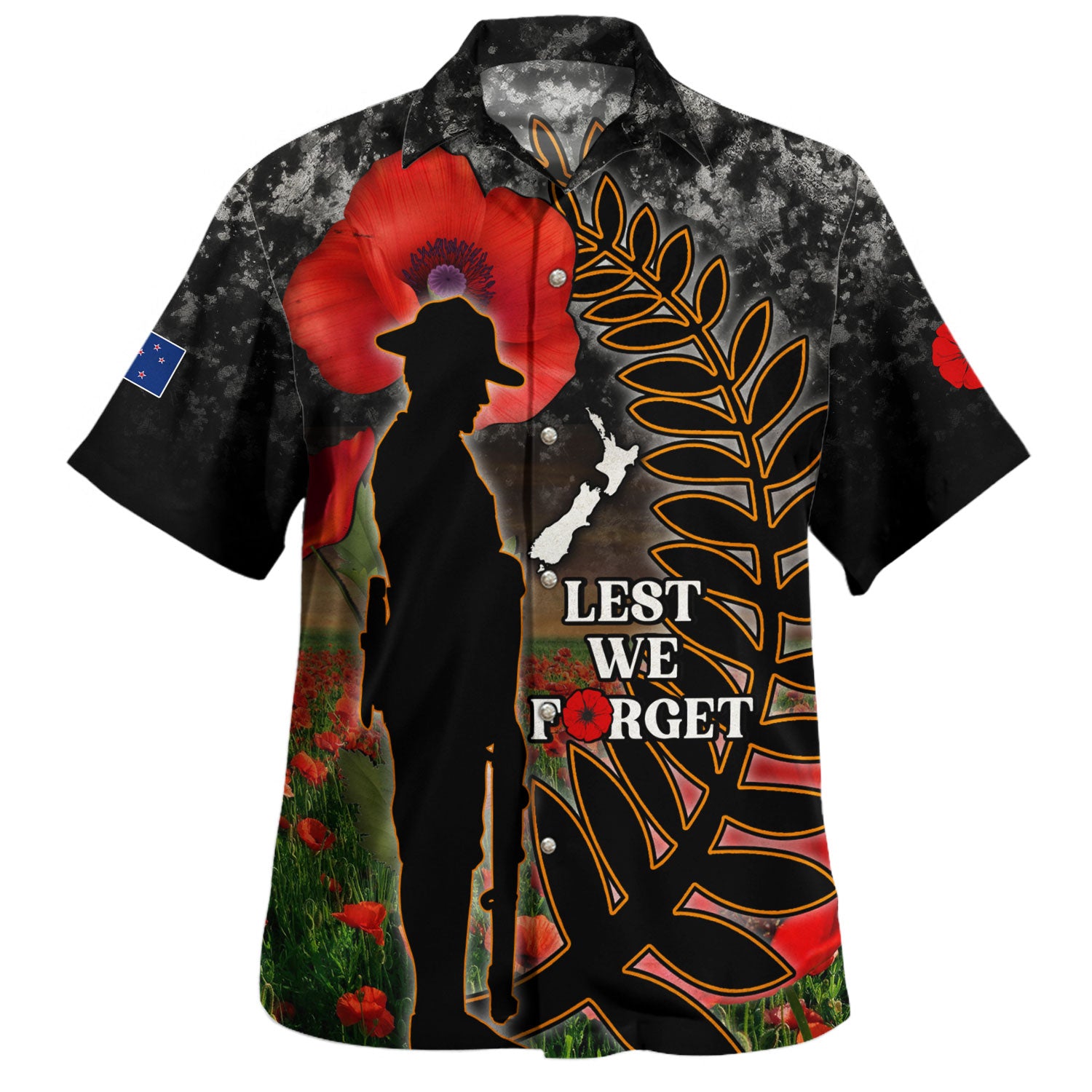 New Zealand Hawaiian Shirt Custom Anzac Day Lest We Forget Silver Fern