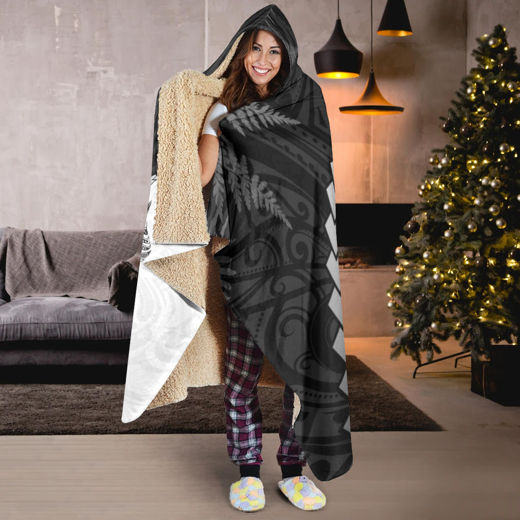 New Zealand Hooded Blanket Silver Fern Maori Pattern