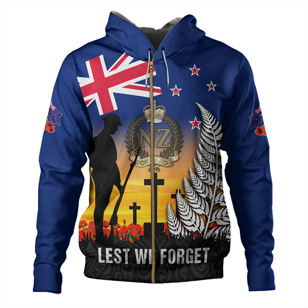 New Zealand Hoodie Anzac Army And Maori Silver Fern Poppy Sunset Style
