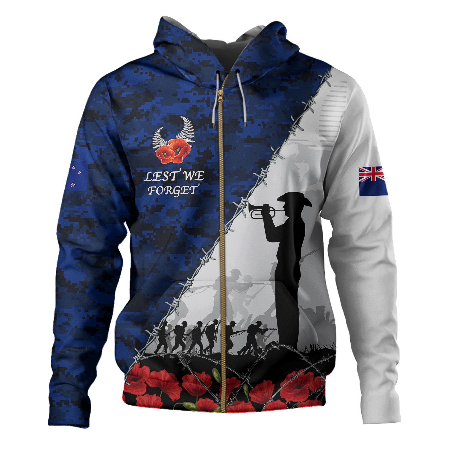 New Zealand Hoodie Anzac Day Poppy Flower And Barbed Wire