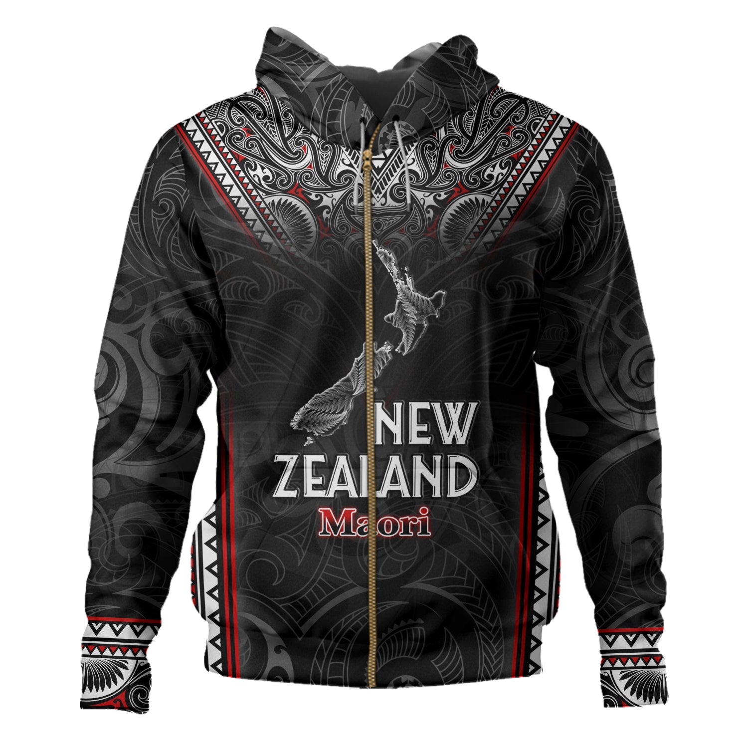 New Zealand Hoodie Maori Patterns With Map Silver Fern