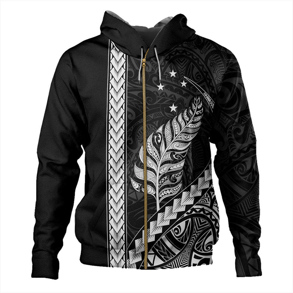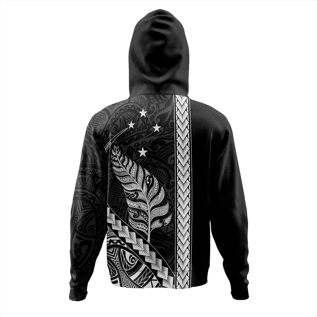 New Zealand Hoodie Maori Tribal Silver Fern With Star Tattoo
