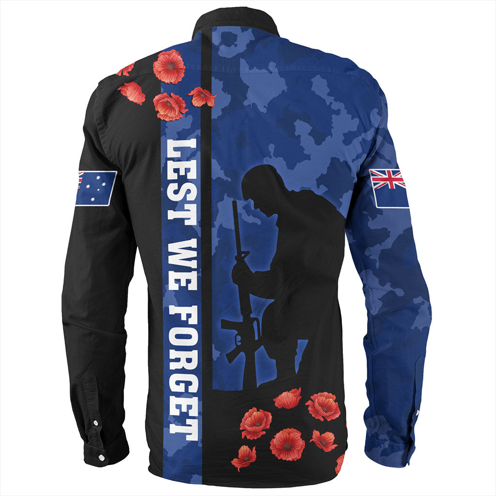 New Zealand Long Sleeve Shirt Anzac Day Lest We Forget Military Camouflage Simple Style