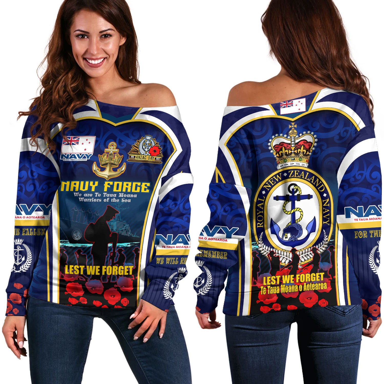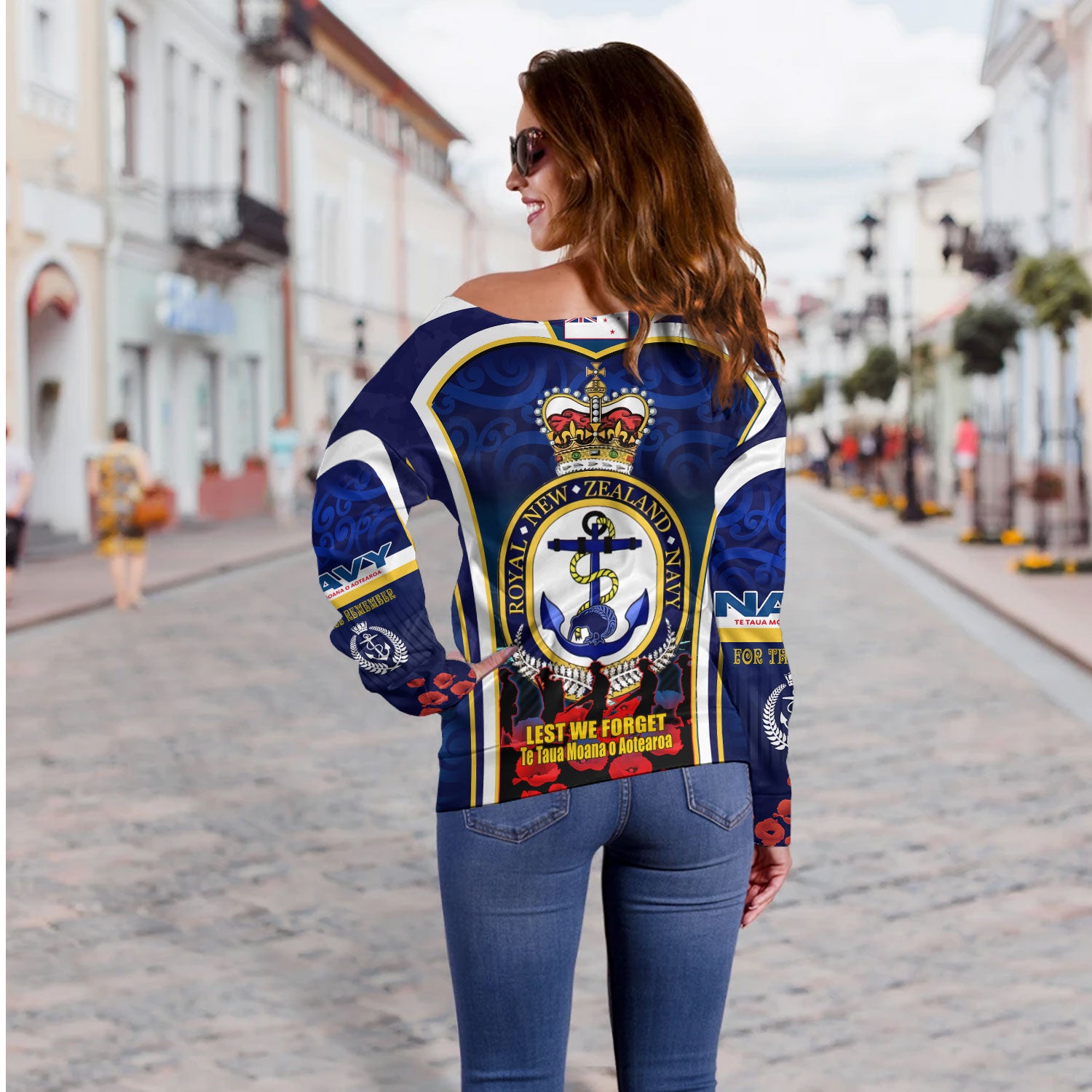 New Zealand Off Shoulder Sweatshirt Custom Anzac Day Royal New Zealand Navy Te Taua Moana o Aotearoa
