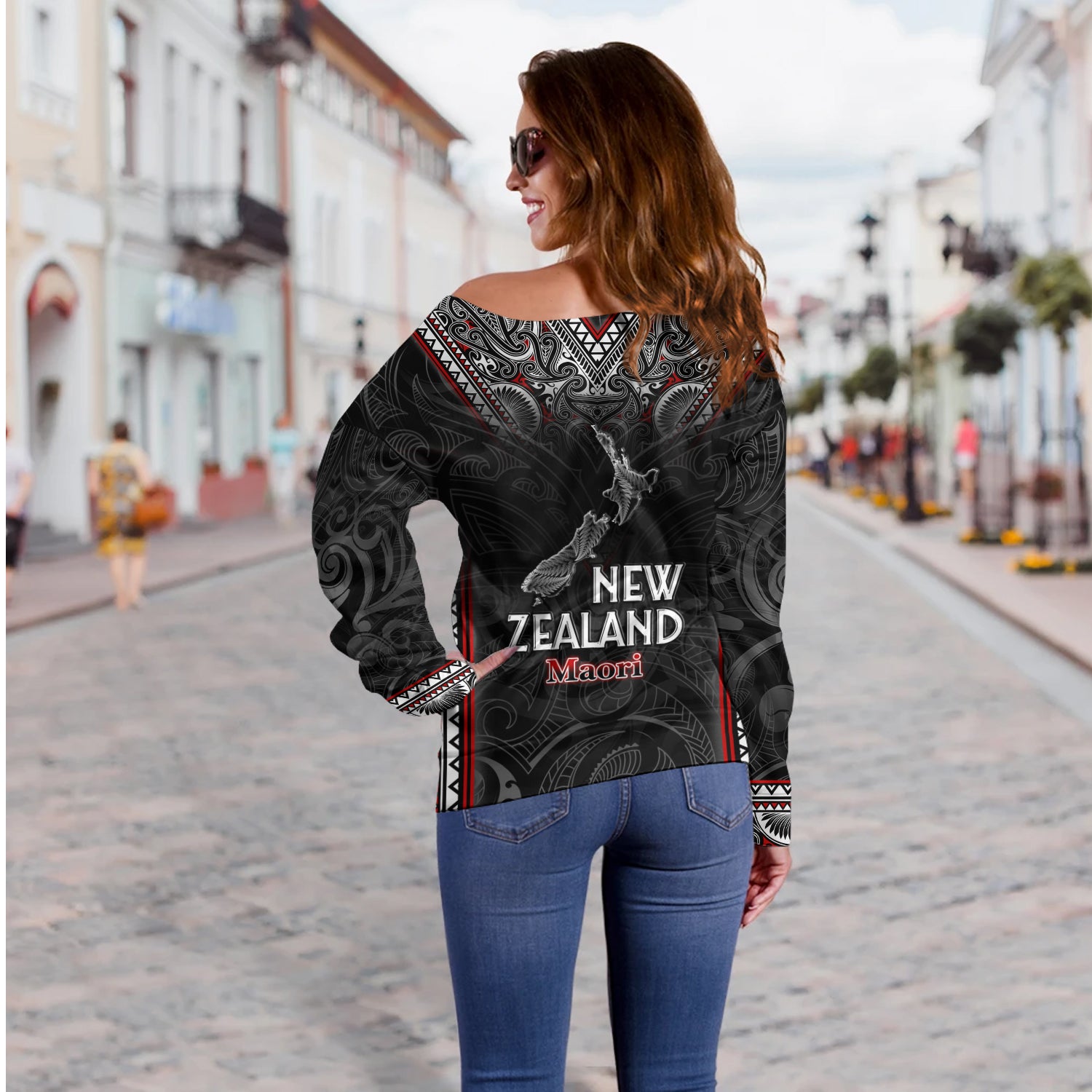 New Zealand Off Shoulder Sweatshirt Maori Patterns With Map Silver Fern