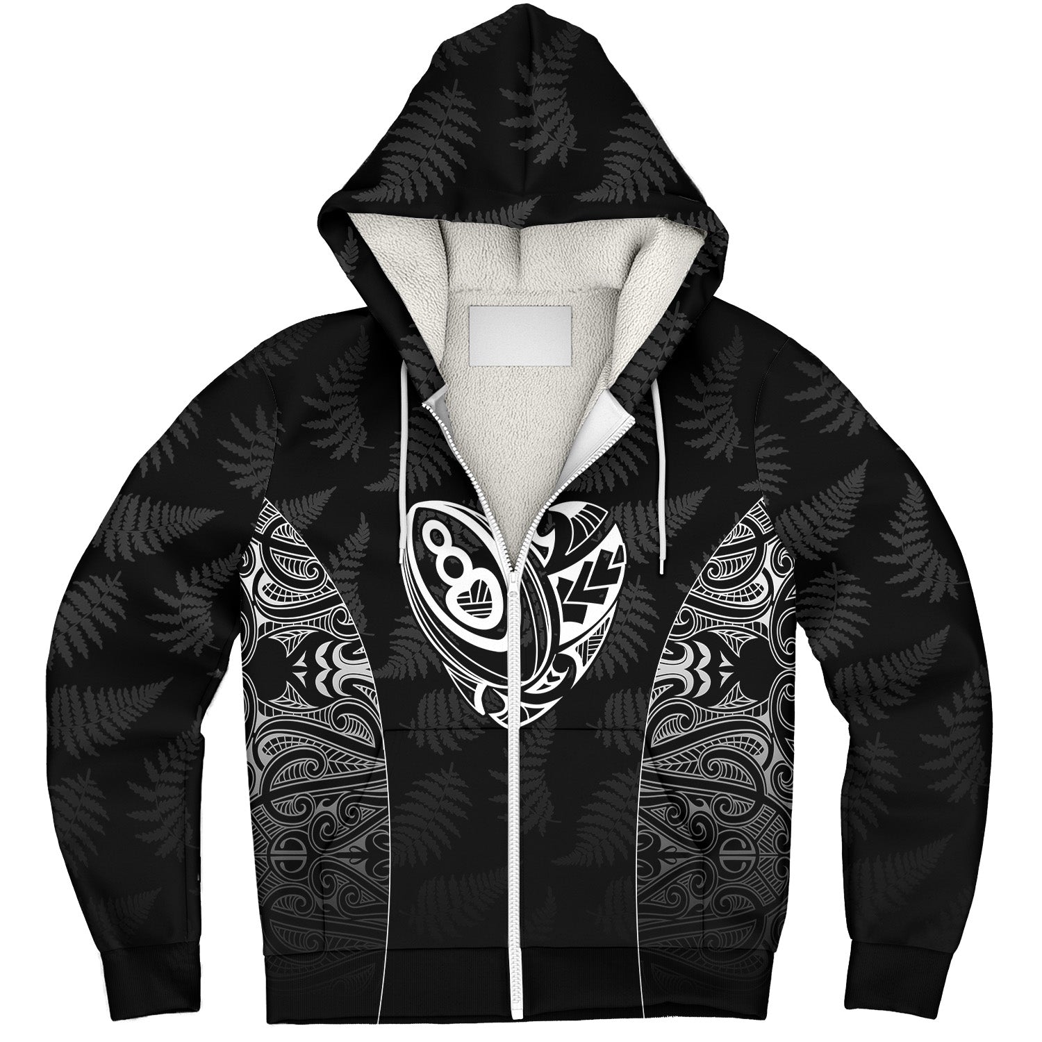 New Zealand Personalized Sherpa Hoodie Rugby Heart Maori Style Silver Fern