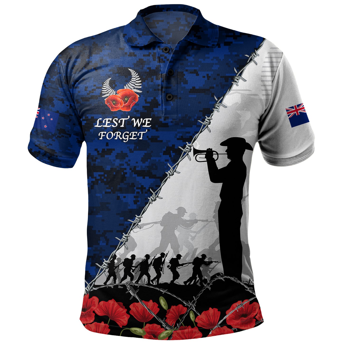 New Zealand Polo Shirt Anzac Day Poppy Flower And Barbed Wire