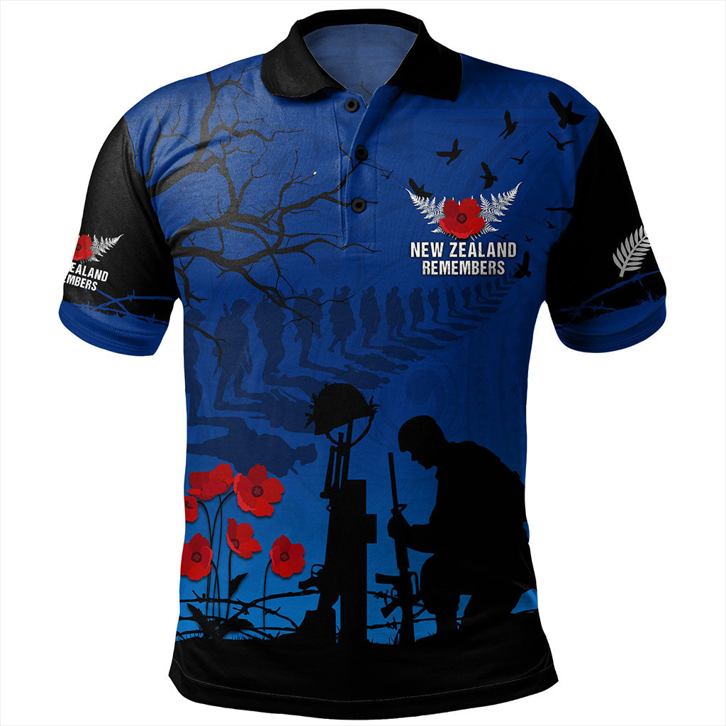 New Zealand Polo Shirt Silver Fern Lest We Forget Remember