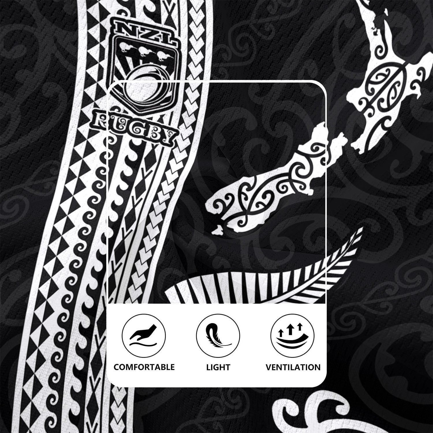 New Zealand Rugby Jersey Custom NZ Rugby Silver Fern And Map Maori Tribal Black Jersey