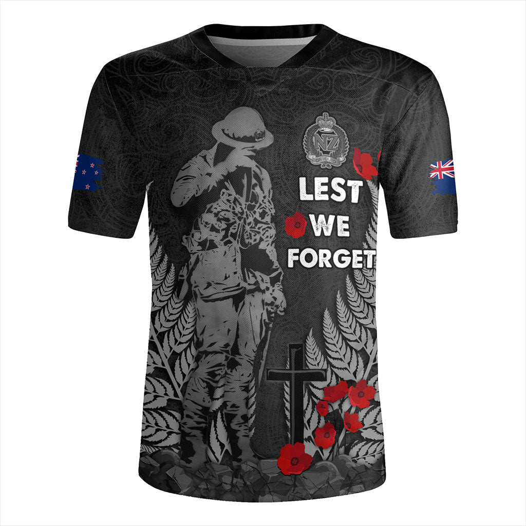New Zealand Rugby Jersey Maori Tribal Silver Fern Lest We Forget Solider