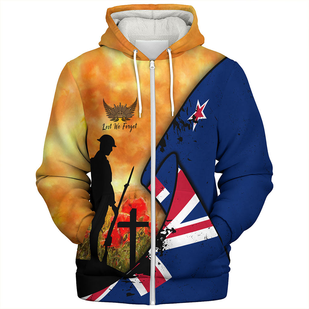 New Zealand Sherpa Hoodie Anzac Day Flag Lest We Forget