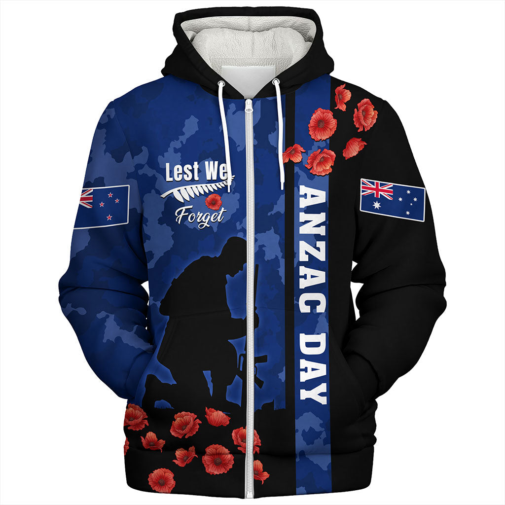 New Zealand Sherpa Hoodie Anzac Day Lest We Forget Military Camouflage Simple Style