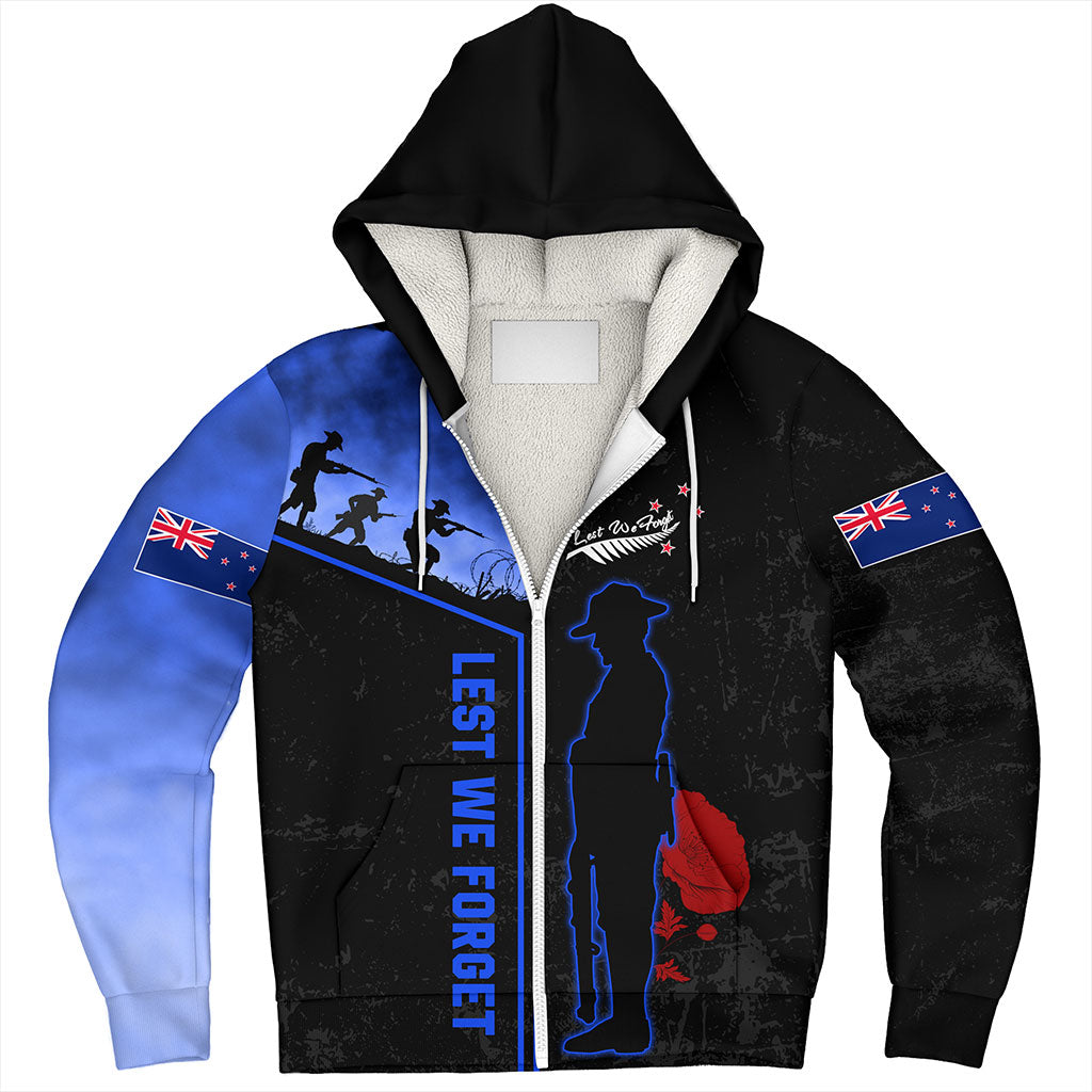 New Zealand Sherpa Hoodie Anzac Day Lest We Forget Poppy Flower Symbol