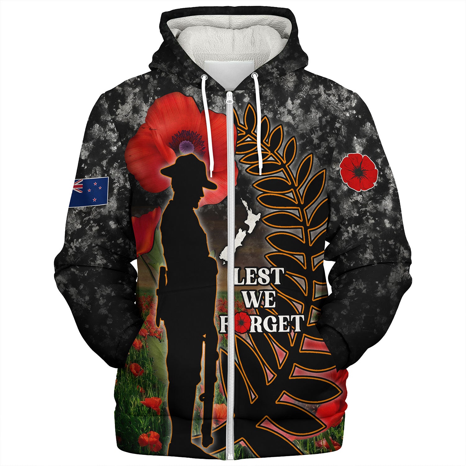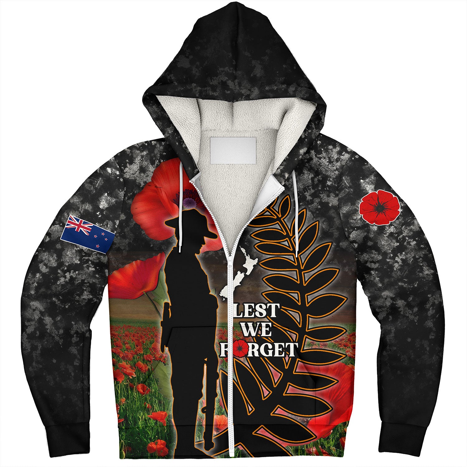 New Zealand Sherpa Hoodie Custom Anzac Day Lest We Forget Silver Fern