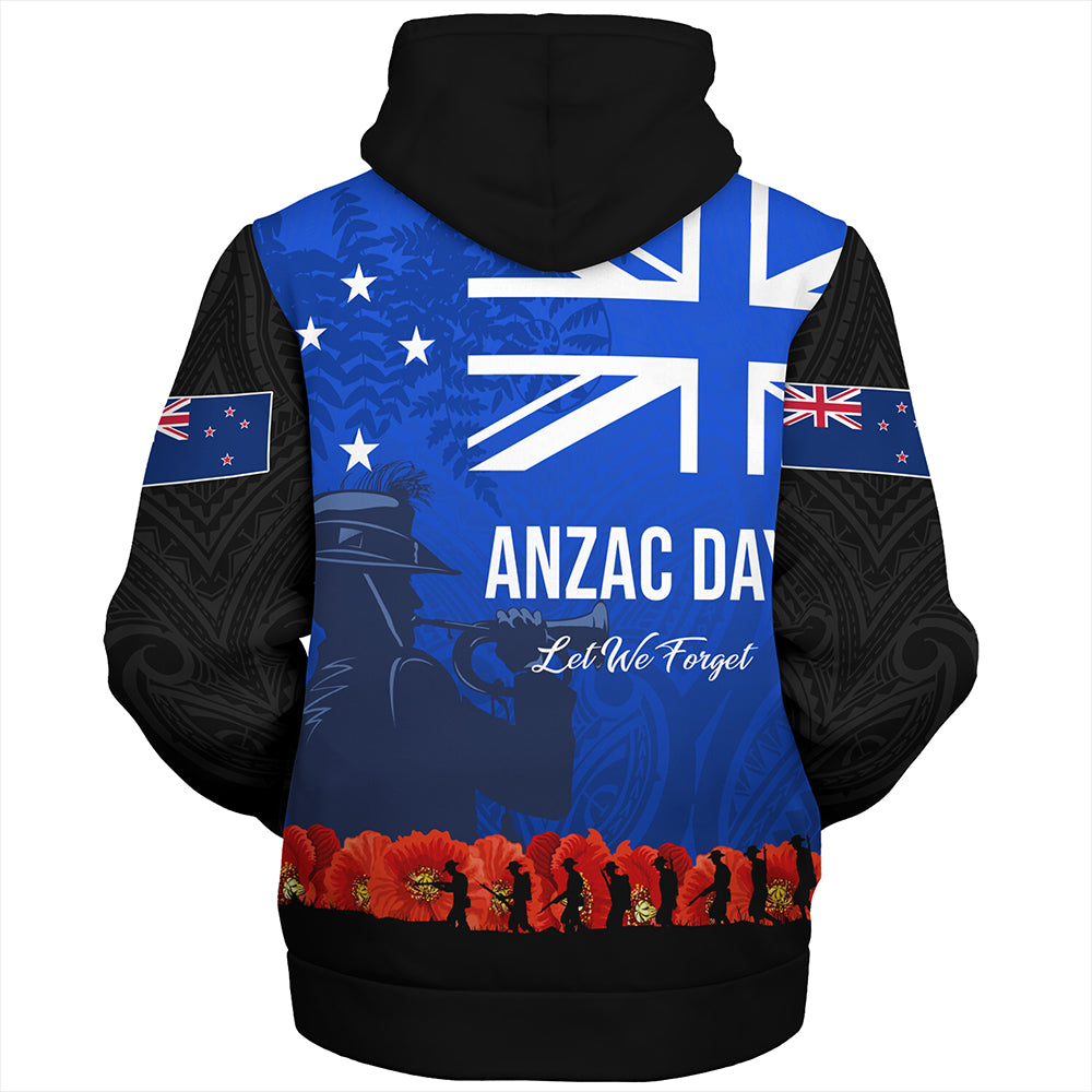 New Zealand Sherpa Hoodie Flag Anzac Day And Red Poppy
