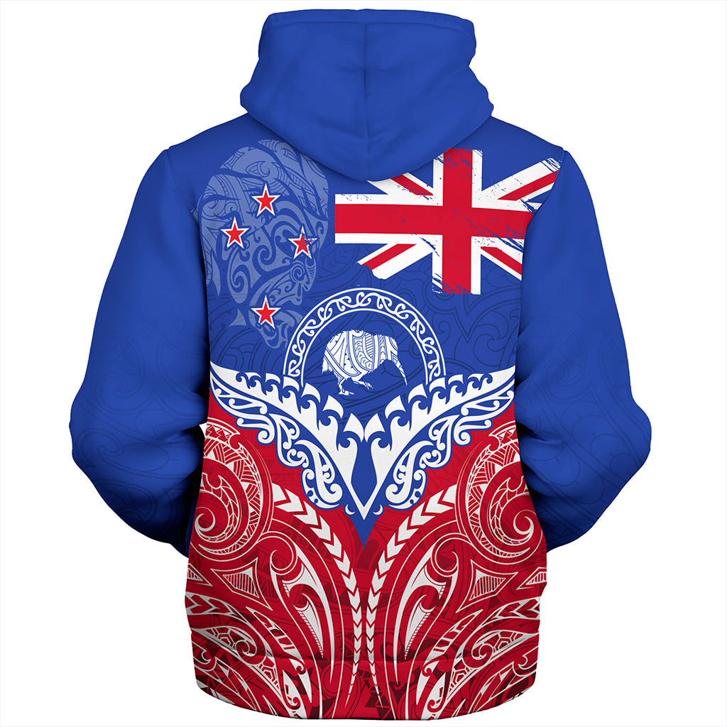 New Zealand Sherpa Hoodie Flag With Kiwi And Maori Pattern