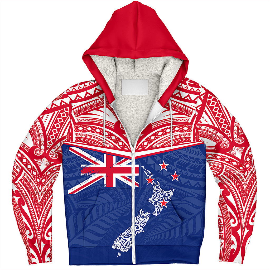 New Zealand Sherpa Hoodie Flag With Map And Maori Pattern