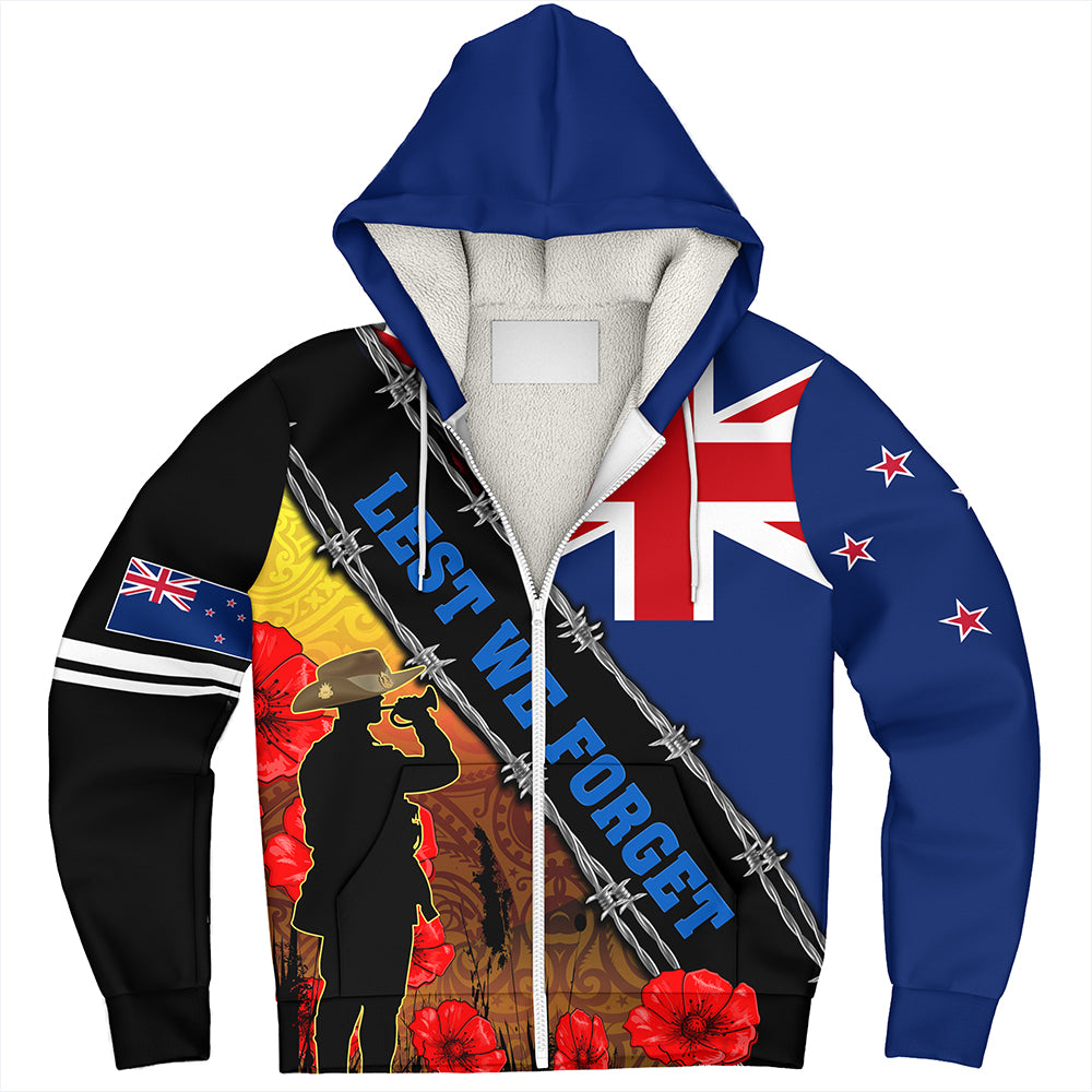 New Zealand Sherpa Hoodie Lest We Forget Poppy Barbwire Style