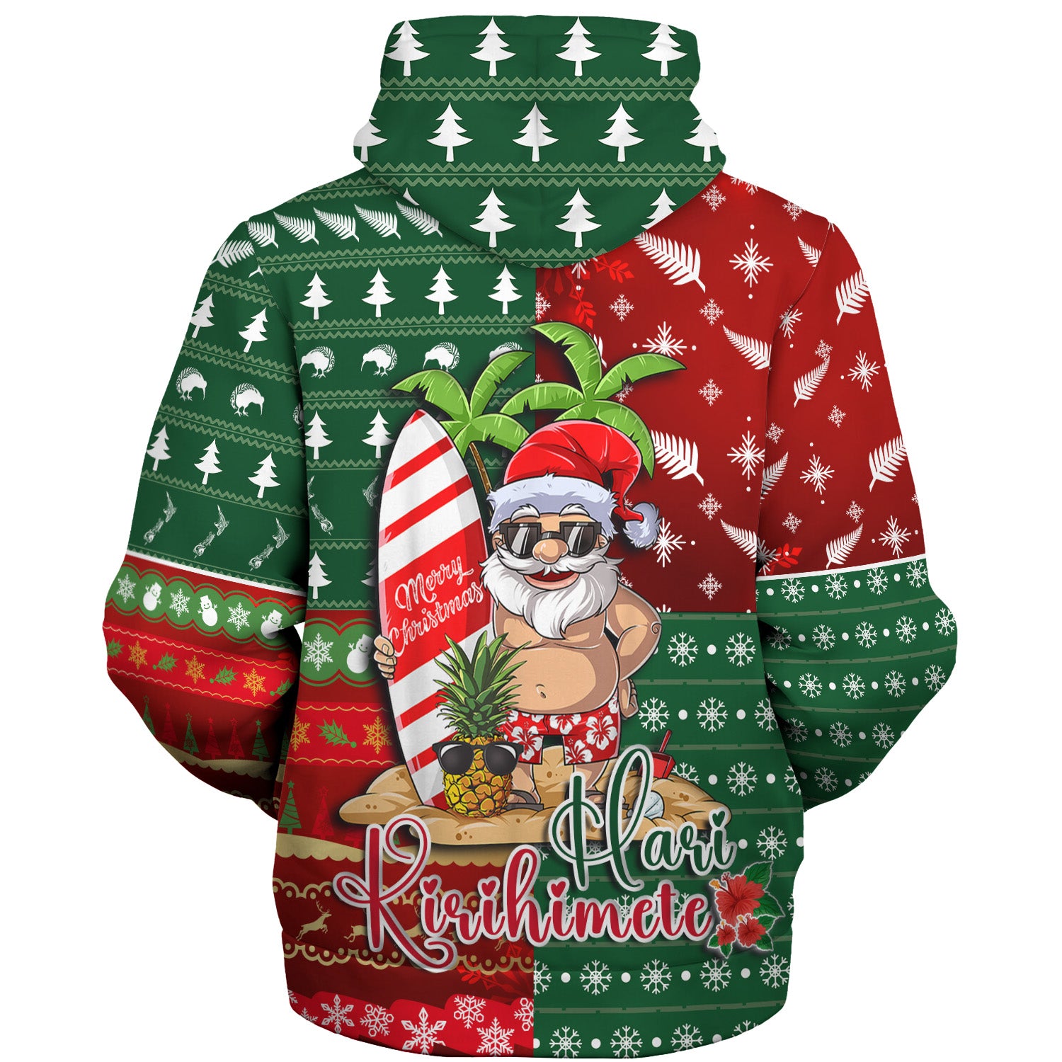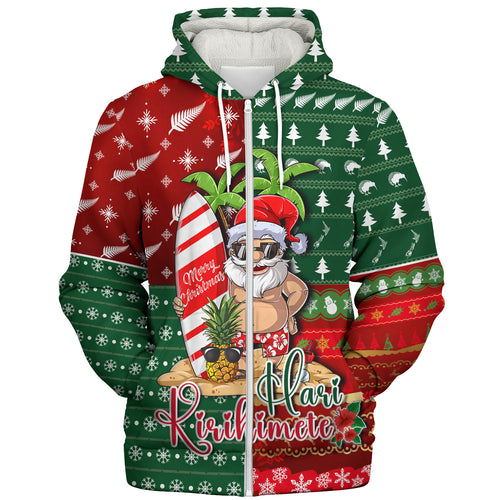 New Zealand Sherpa Hoodie Maori Hari Kirihimete Tropical Xmas Patterns