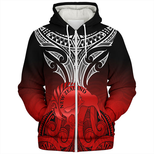 New Zealand Sherpa Hoodie Maori Kiwi Bird Symbols Map
