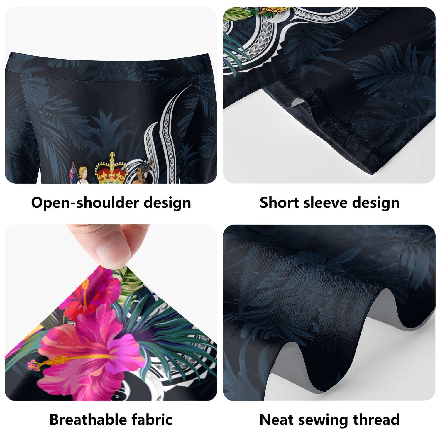 New Zealand Short Sleeve Off The Shoulder Lady Dress Tropical Flower