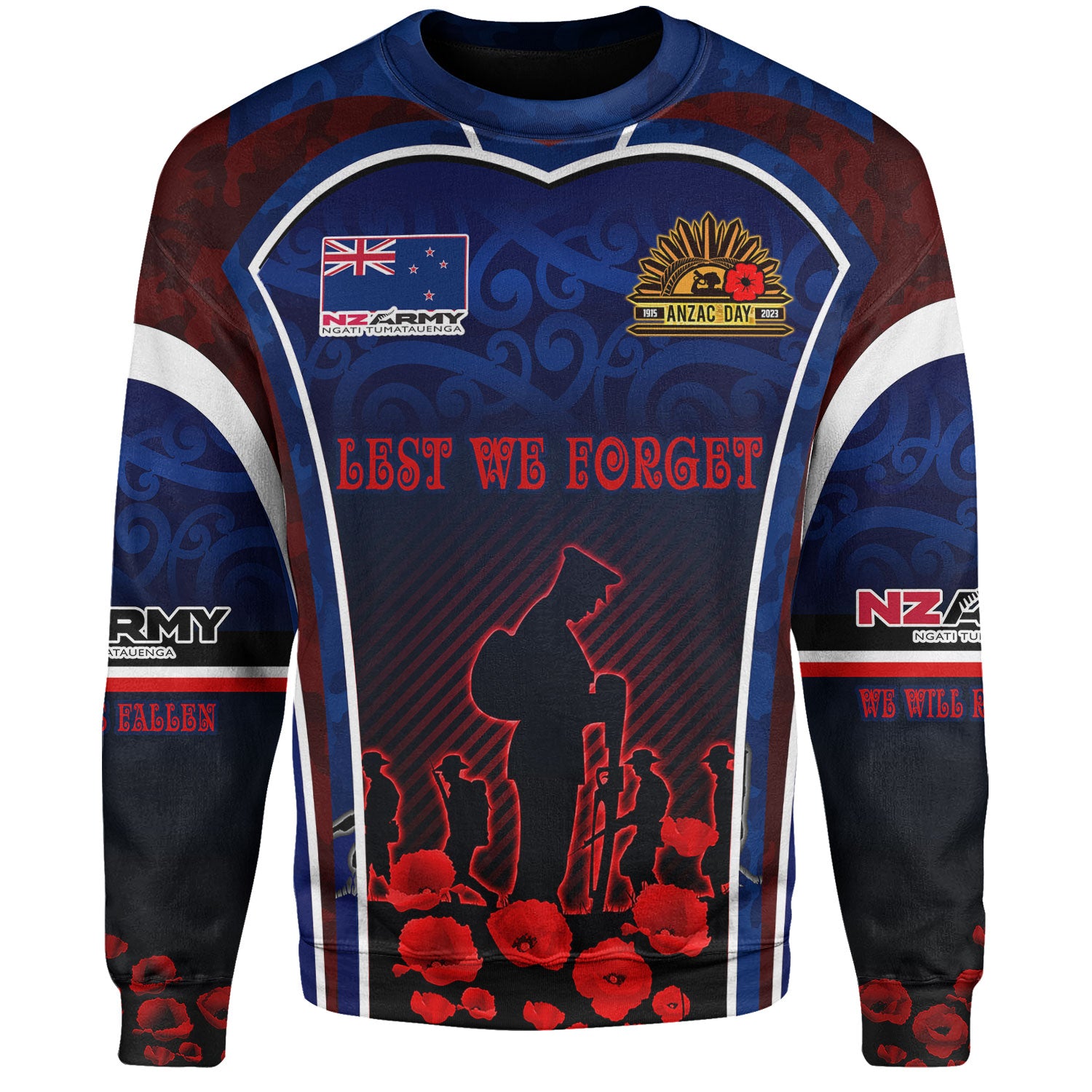 New Zealand Sweatshirt Custom New Zealand Army Keeping Anzac Spirit Lives Poppies Maori Style