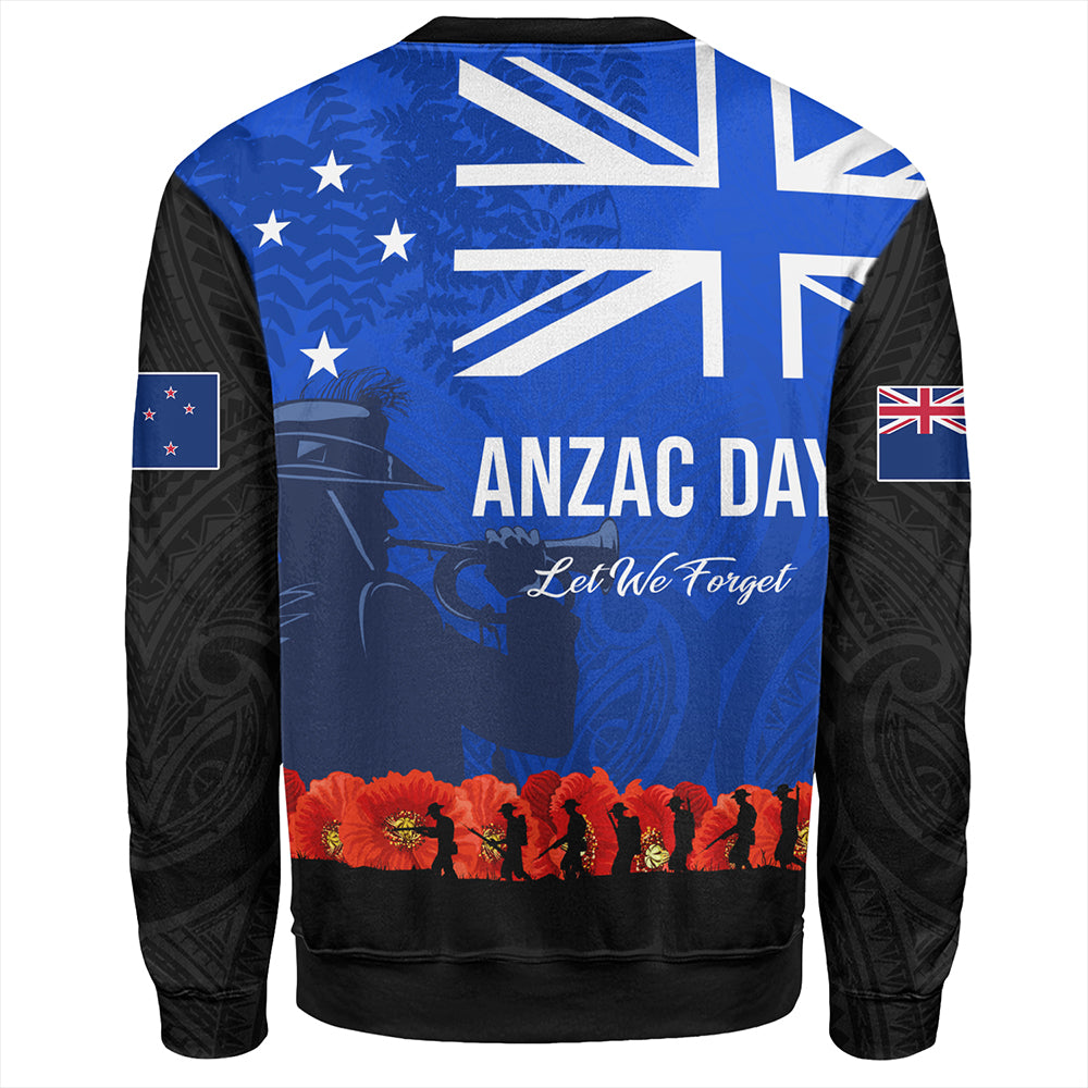 New Zealand Sweatshirt Flag Anzac Day And Red Poppy