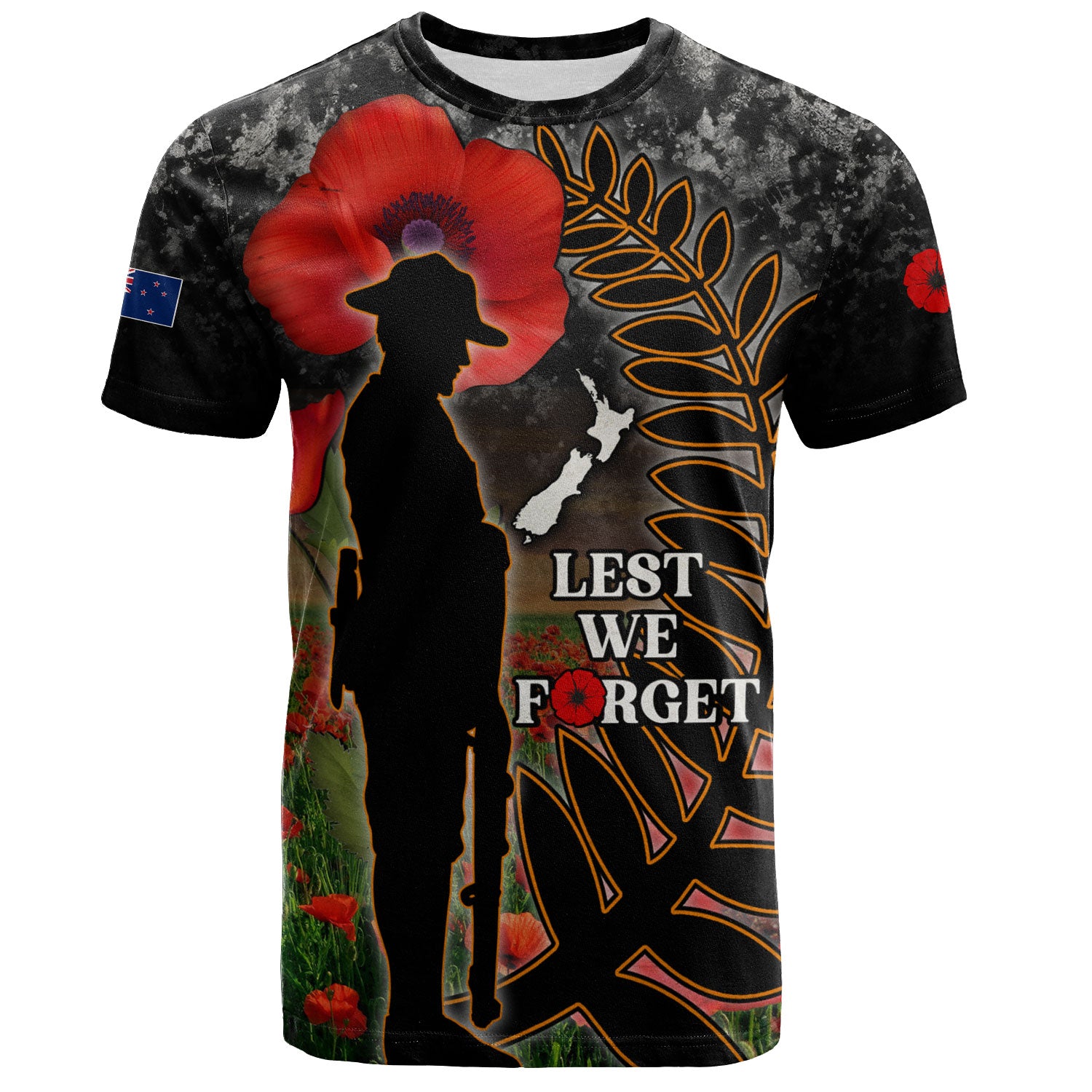 New Zealand T-Shirt Custom Anzac Day Lest We Forget Silver Fern