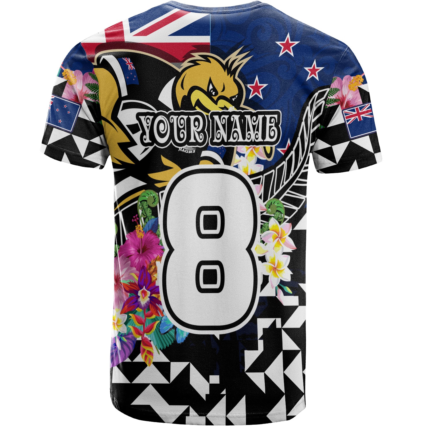 New Zealand T-Shirt Custom Maori Kiwis Rugby Silver Fern Black Hexagon Tropical Jersey