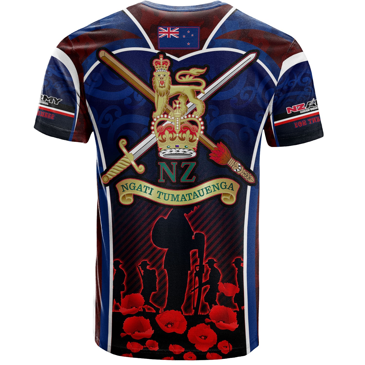 New Zealand T-Shirt Custom New Zealand Army Keeping Anzac Spirit Lives Poppies Flower Maori Style
