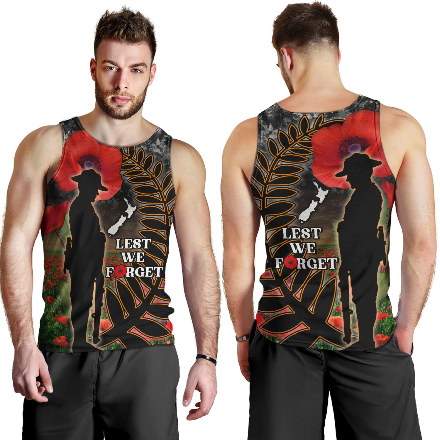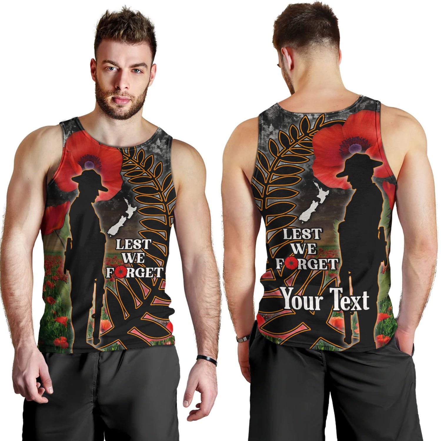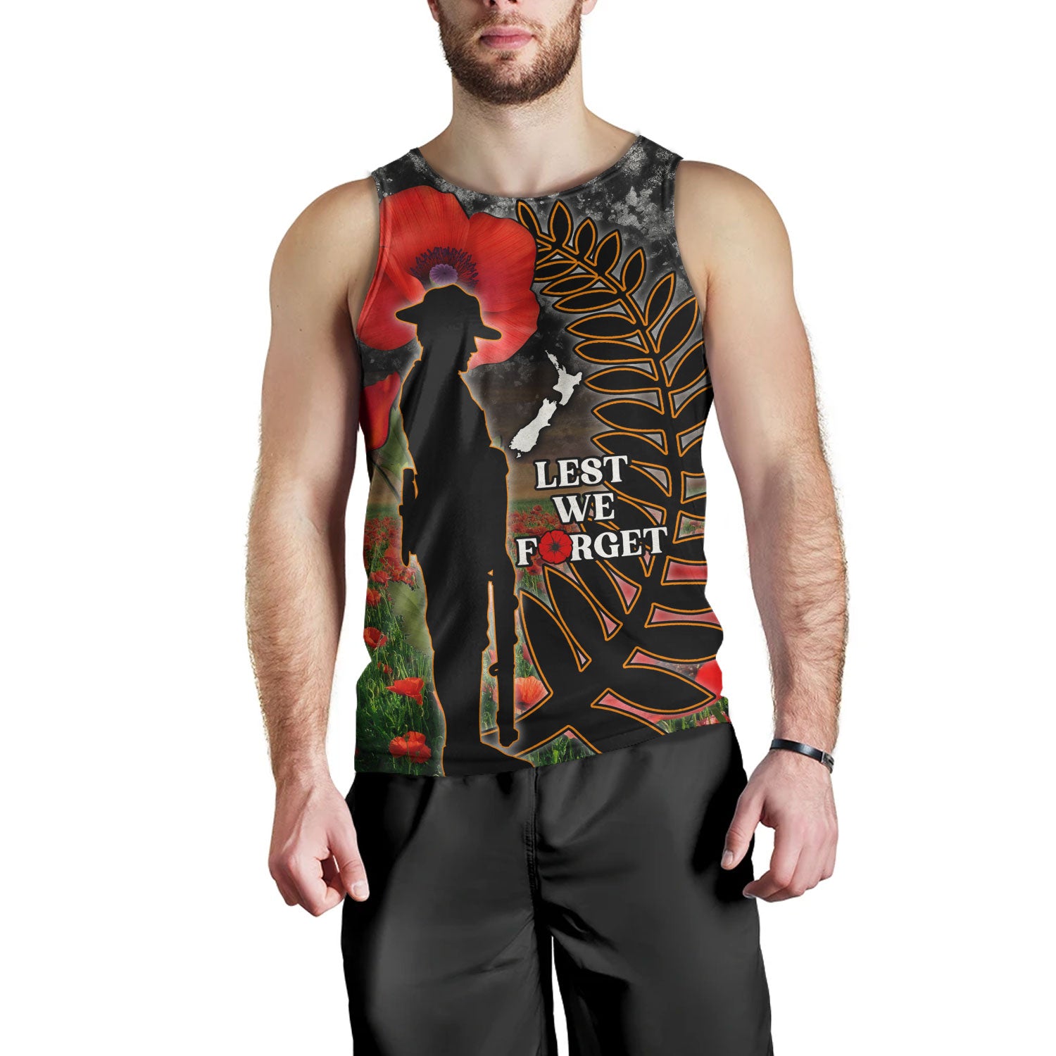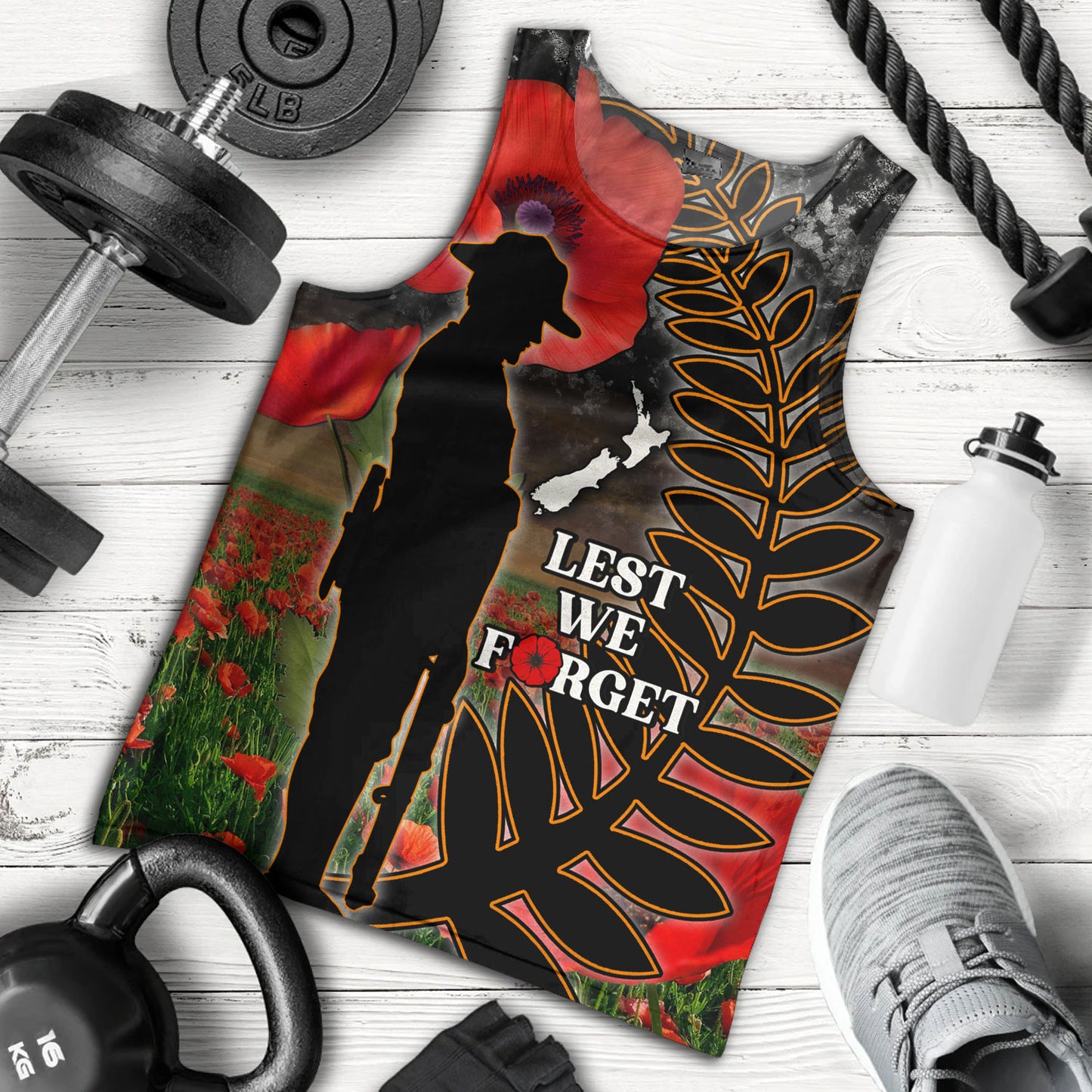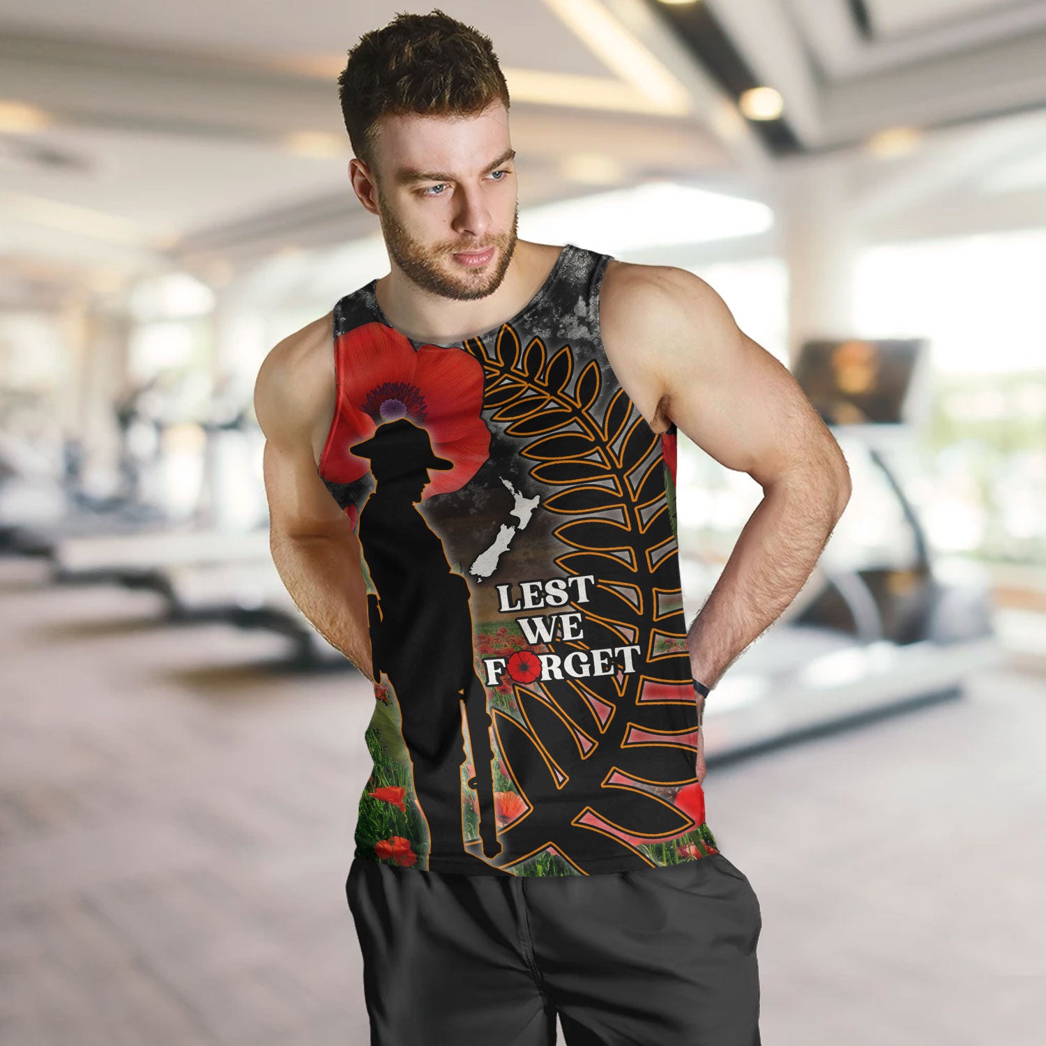New Zealand Tank Top Custom Anzac Day Lest We Forget Silver Fern