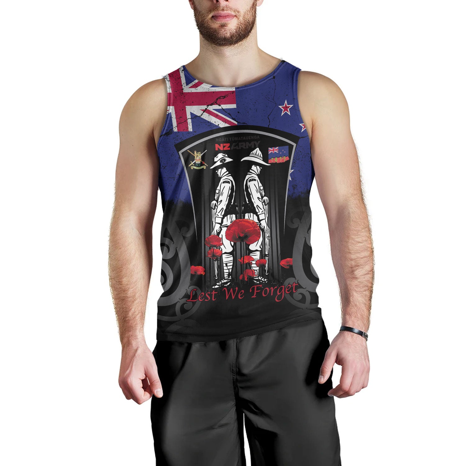 New Zealand Tank Top Custom New Zealand Anzac Day With Poppy Flowers And Traditional Maori Patterns