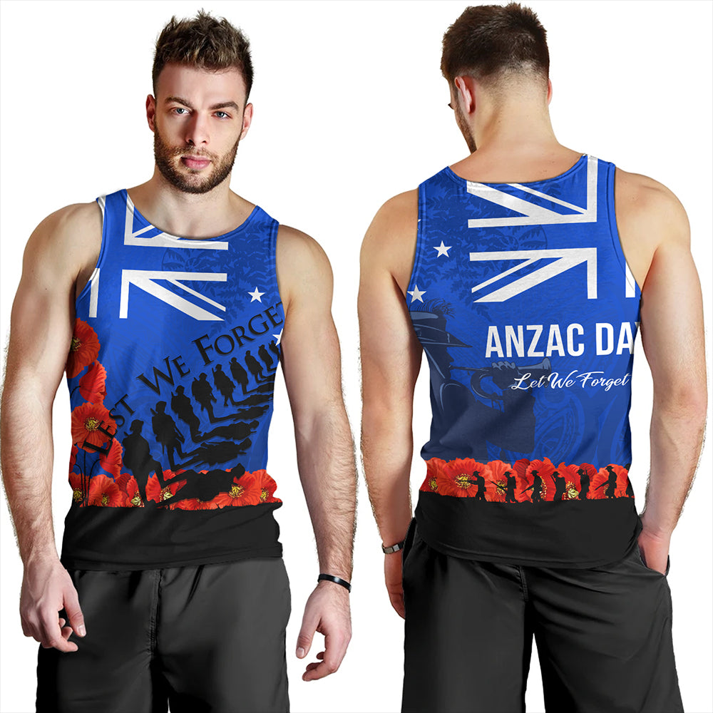 New Zealand Tank Top Flag Anzac Day And Red Poppy