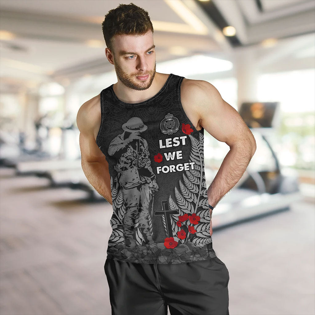 New Zealand Tank Top Maori Tribal Silver Fern Lest We Forget Solider