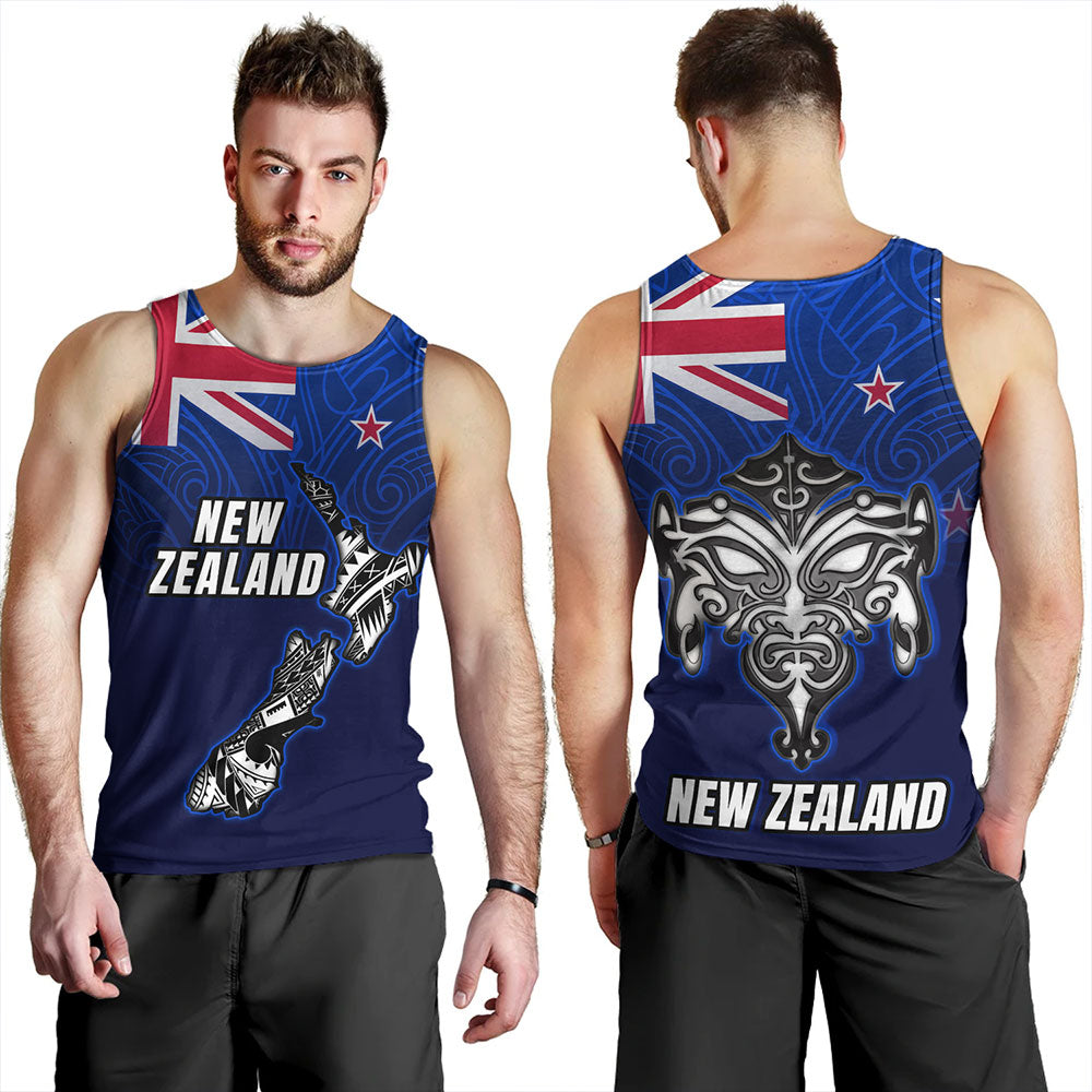 New Zealand Tank Top - New Zealand Map Maori Face Patterns