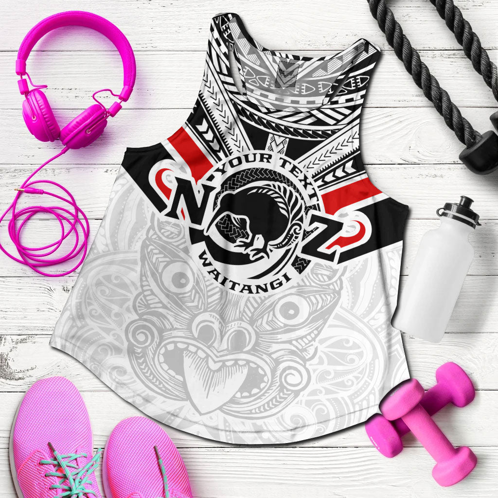 New Zealand Waitangi Day Women Racerback Tank - New Zealand Kiwi Fern With Maori Koru Spiral White