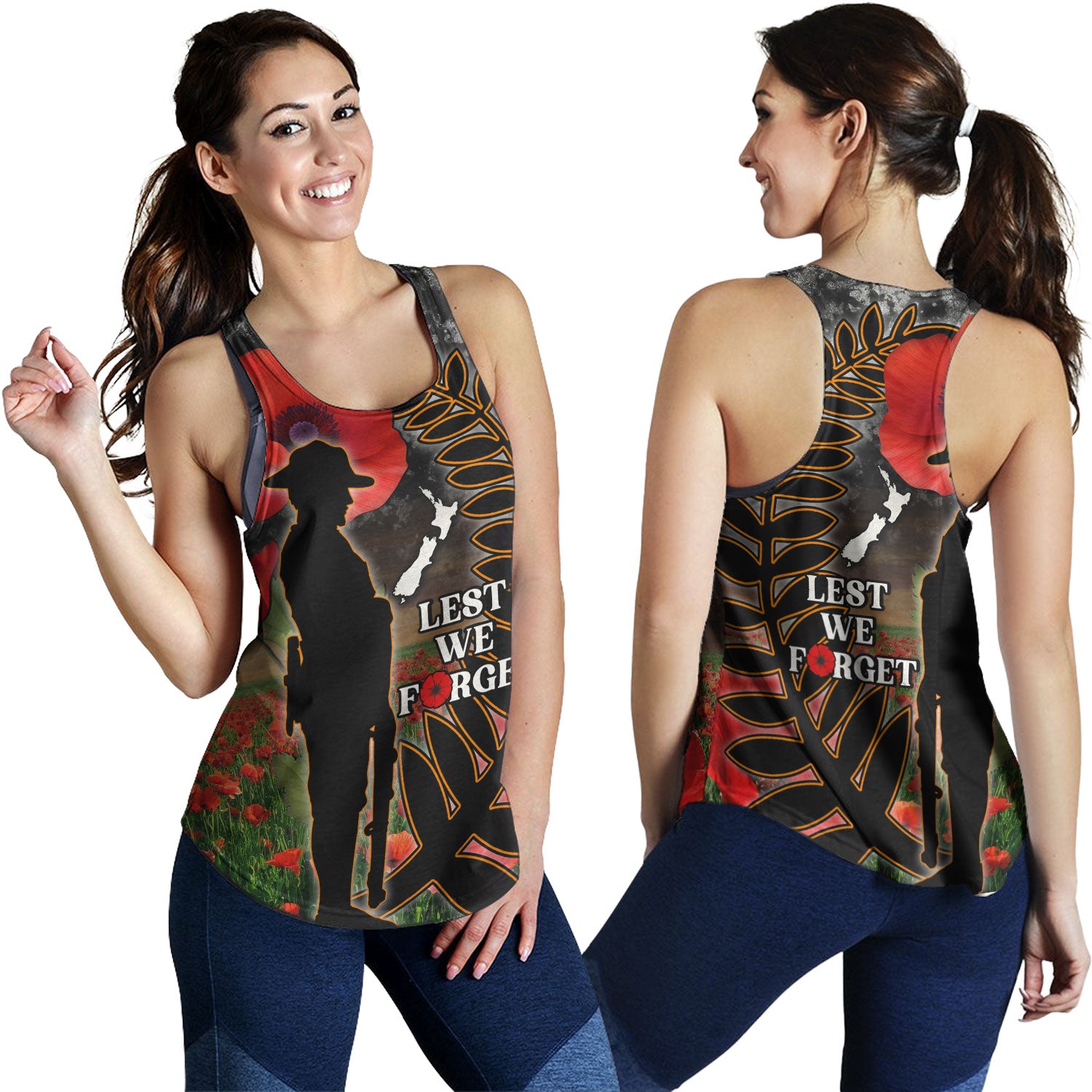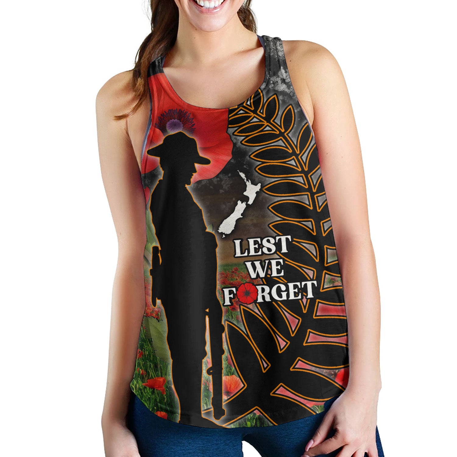 New Zealand Women Tank Custom Anzac Day Lest We Forget Silver Fern