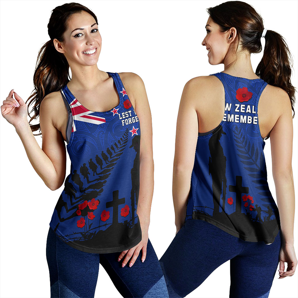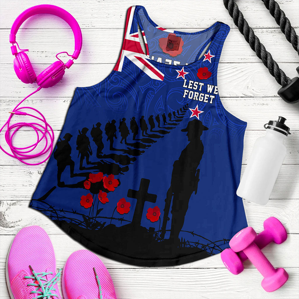 New Zealand Women Tank Flag Maori Pattern Solider Fern Lest We Forget