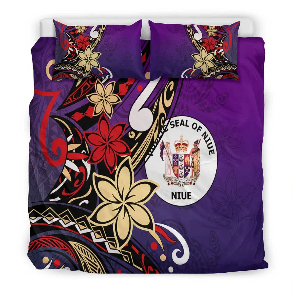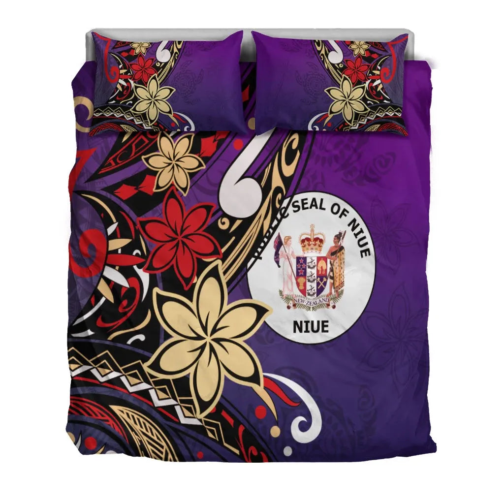 Niue Bedding Set - Tribal Flower With Special Turtles Purple Color