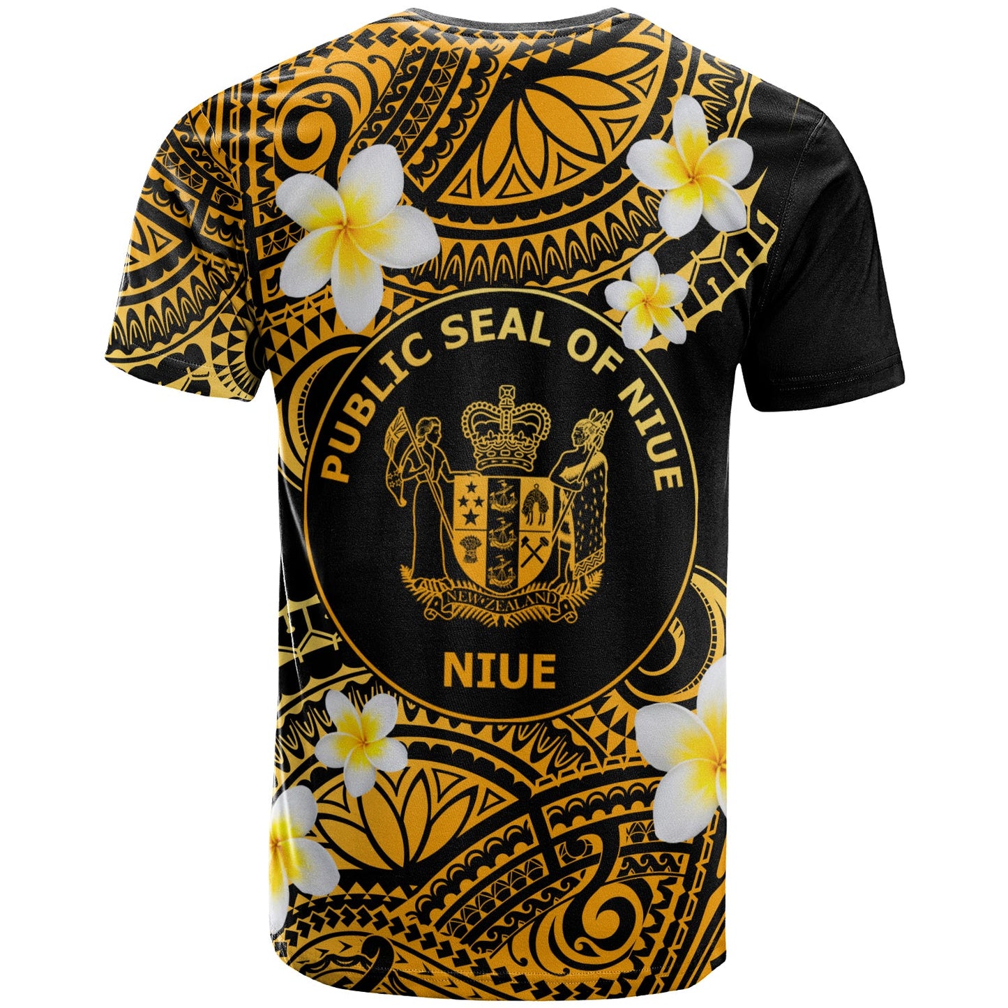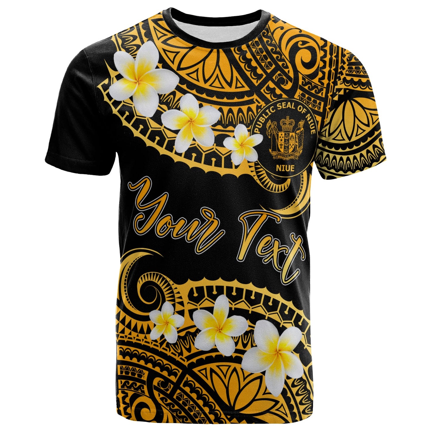 Niue Custom Personalised T-Shirt - Plumeria Polynesian Vibe Gold