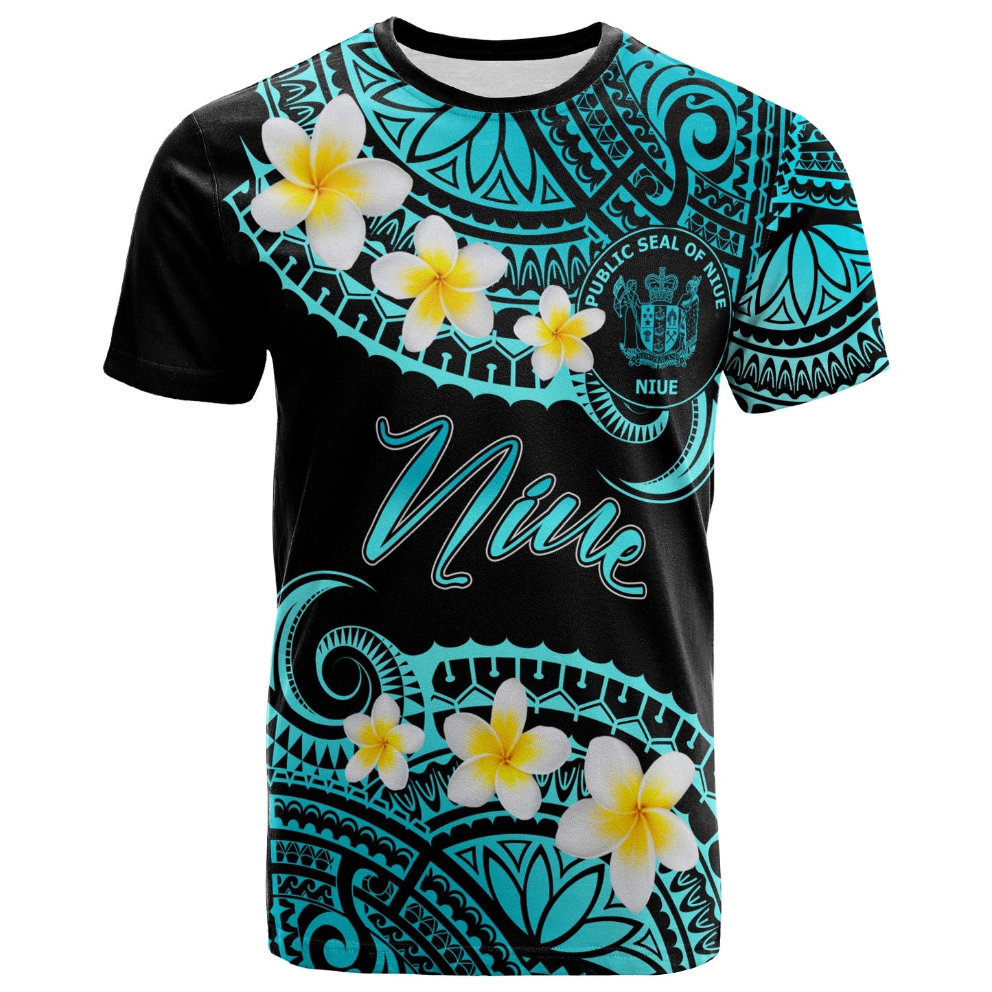 Niue Custom Personalised T-Shirt - Plumeria Polynesian Vibe Turquoise