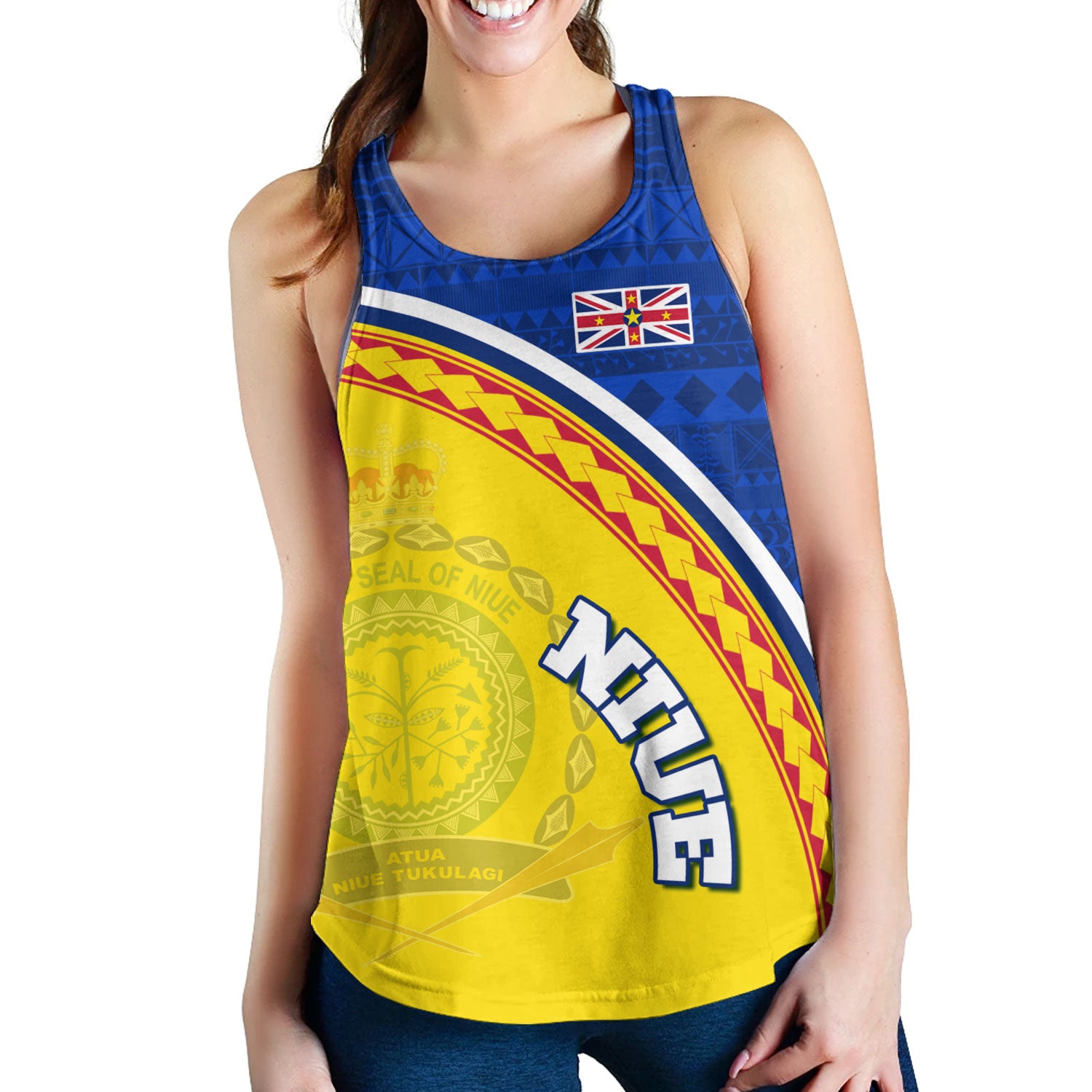 Niue Custom Personalised Women Tank Niue Patterns Hiapo Curve Style